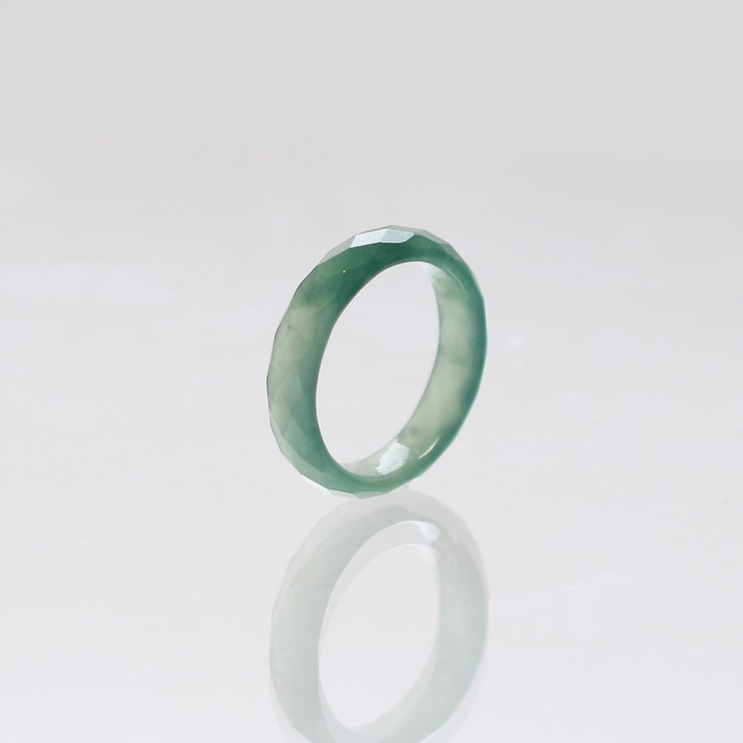 透き通るブルーグリーンの翡翠にファセットカットを施しました!