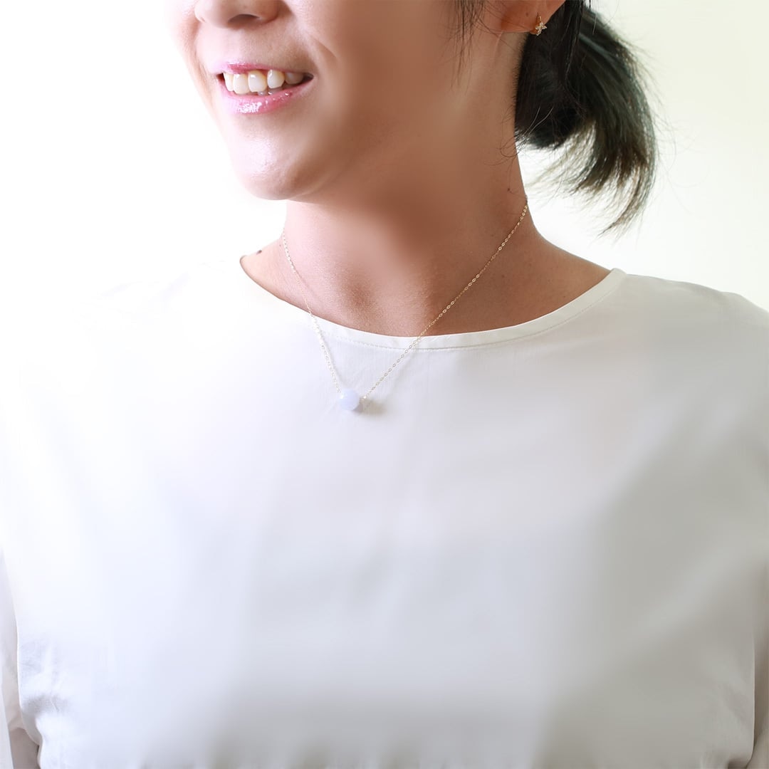 つやつやのラベンダー翡翠を一粒あしらったネックレス♡