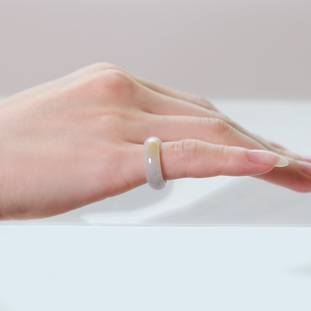 【6.5号】Point yellow 翡翠くり抜き甲丸リング A貨翡翠 jd_rg2393