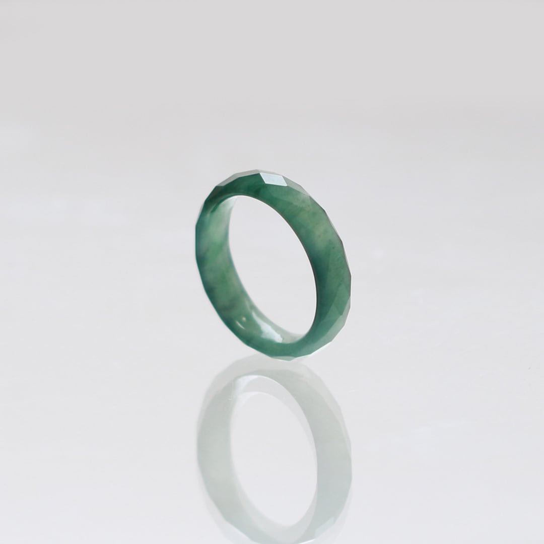 透き通るブルーグリーンの翡翠にカットを施したリング!