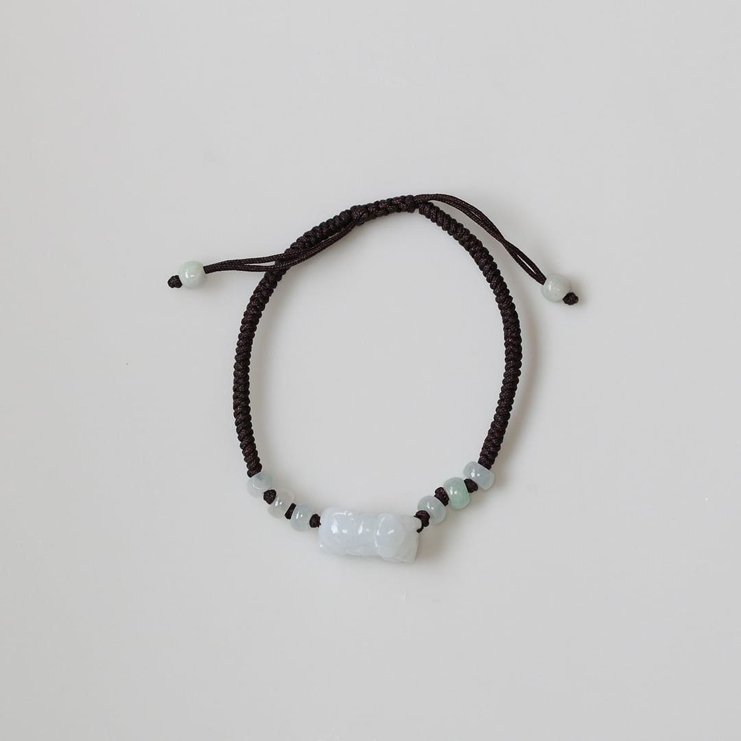 貔貅〈ヒキュウ〉紐ブレスレット hikyu brown A貨翡翠 jd_br1142