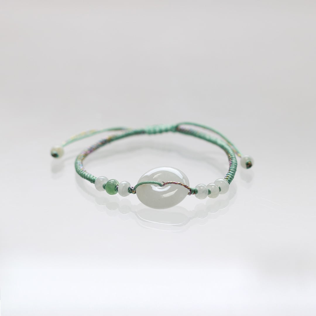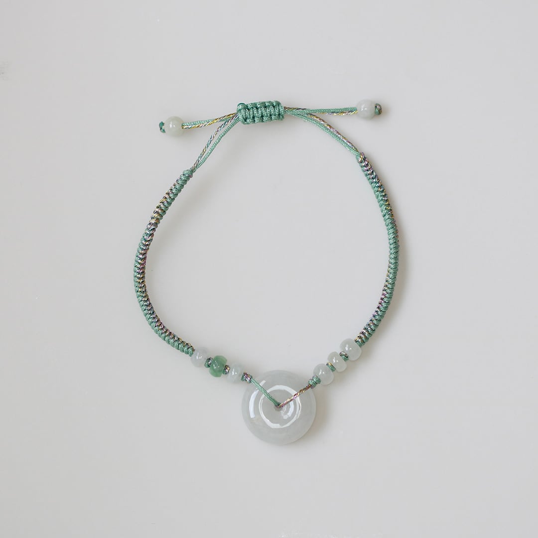 コインモチーフの艶々翡翠が目を惹く紐ブレスレット!