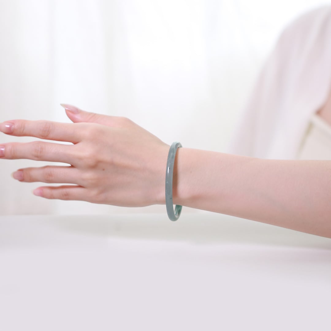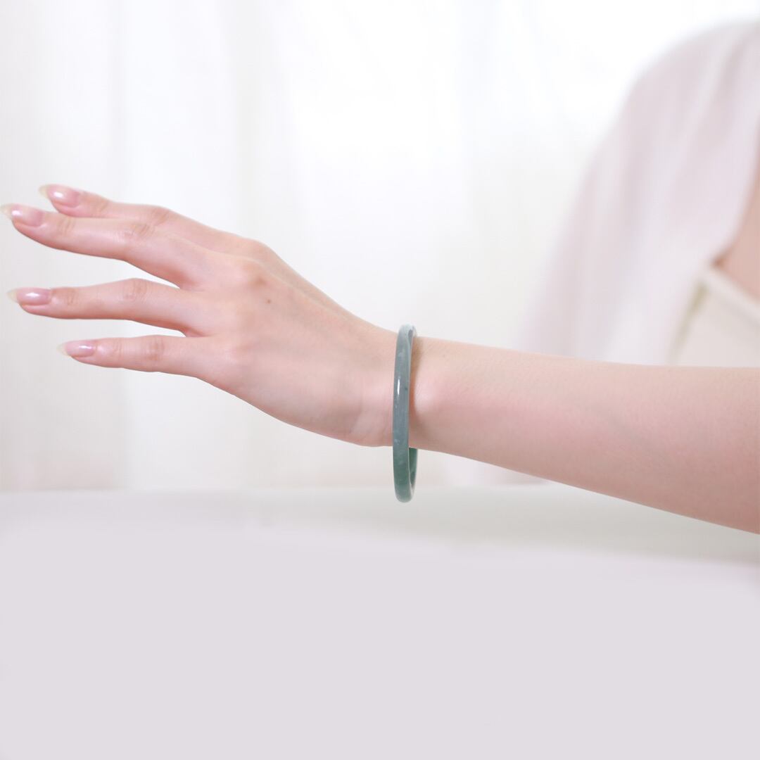 透明感あふれるブルーグリーンの翡翠が美しいバングル!
