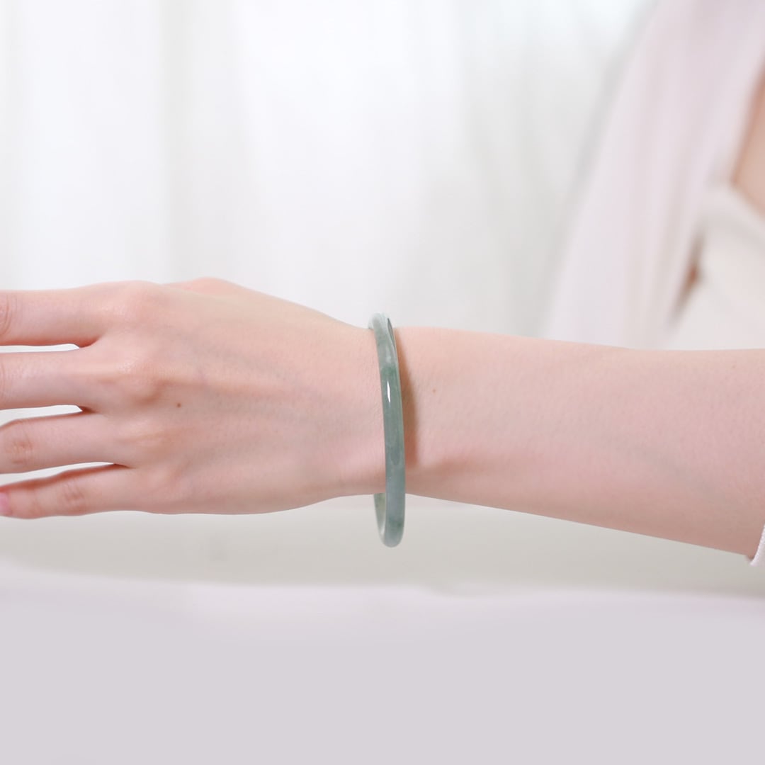 透明感あふれるブルーグリーンの翡翠が美しいバングル!