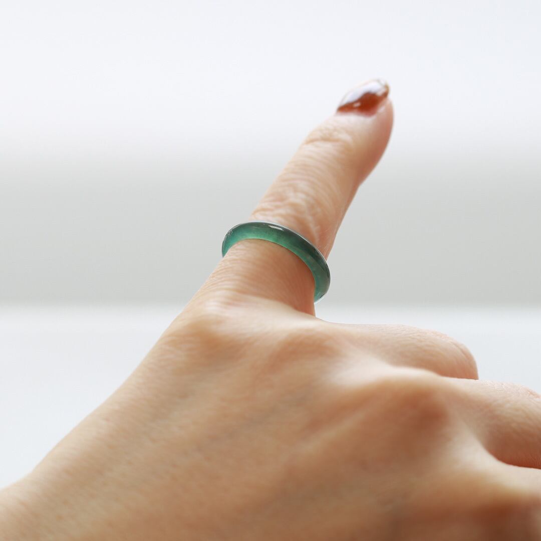 翡翠くり抜きリングは、普段の号数より1~2号ほど大きめのサイズをおすすめいたします。