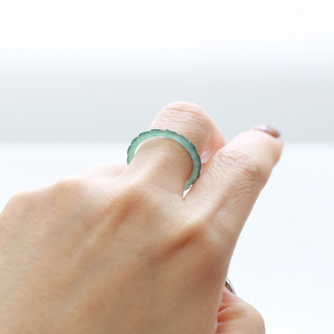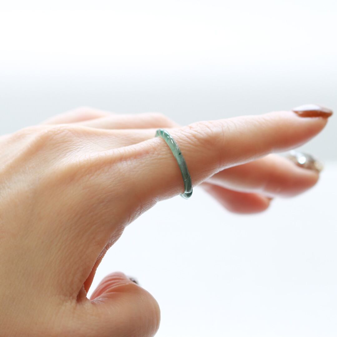 翡翠くり抜きリングは、普段の号数より1~2号ほど大きめのサイズをおすすめいたします。