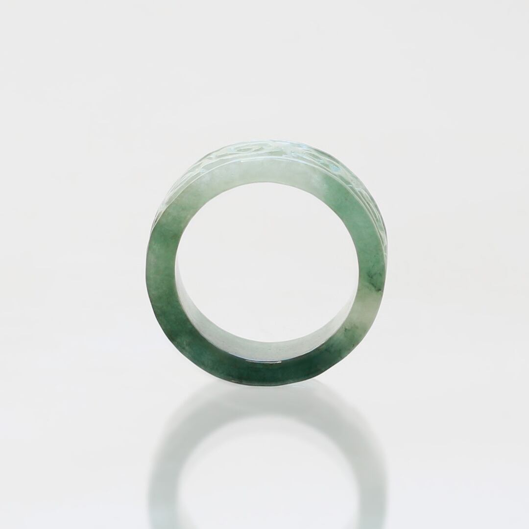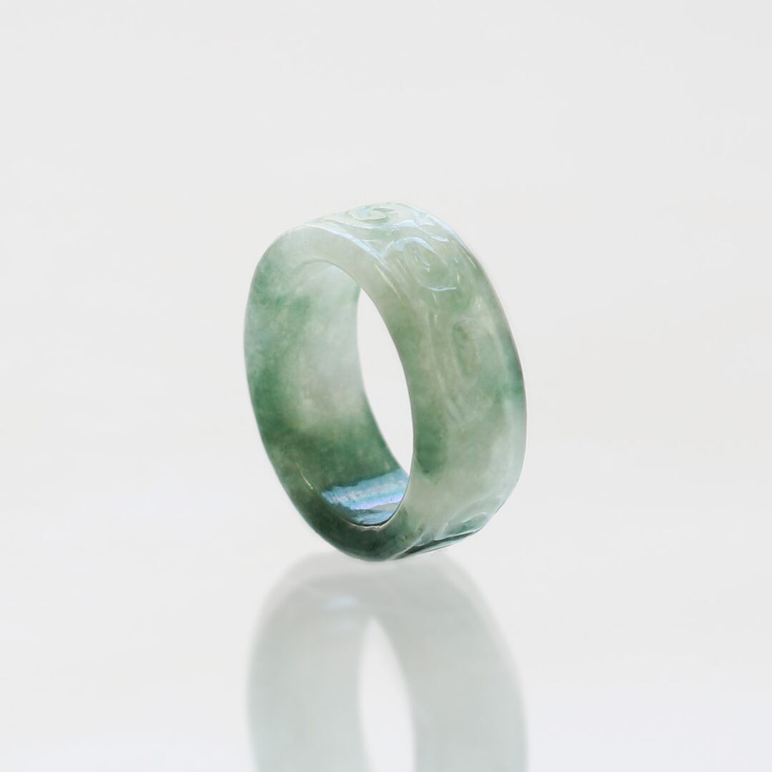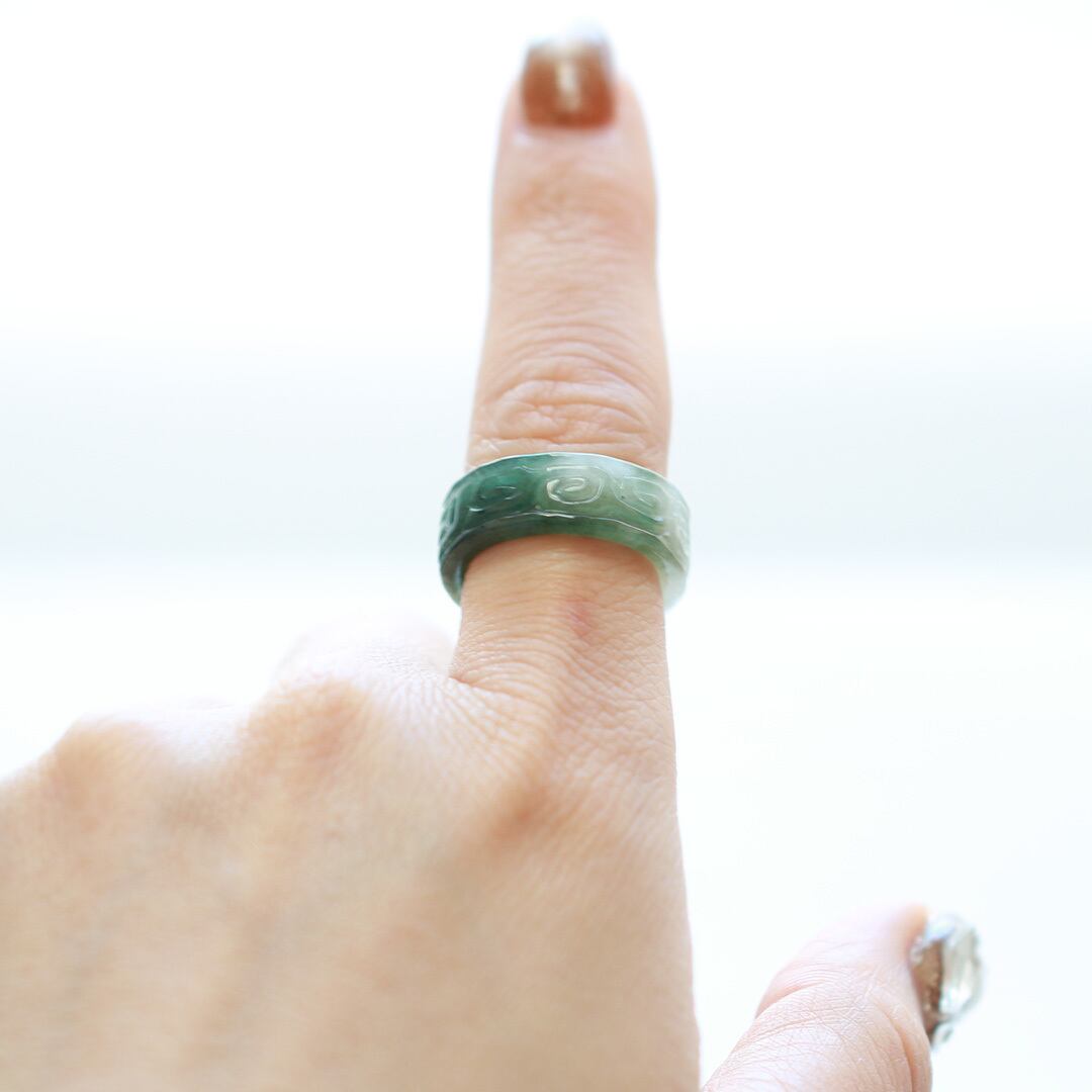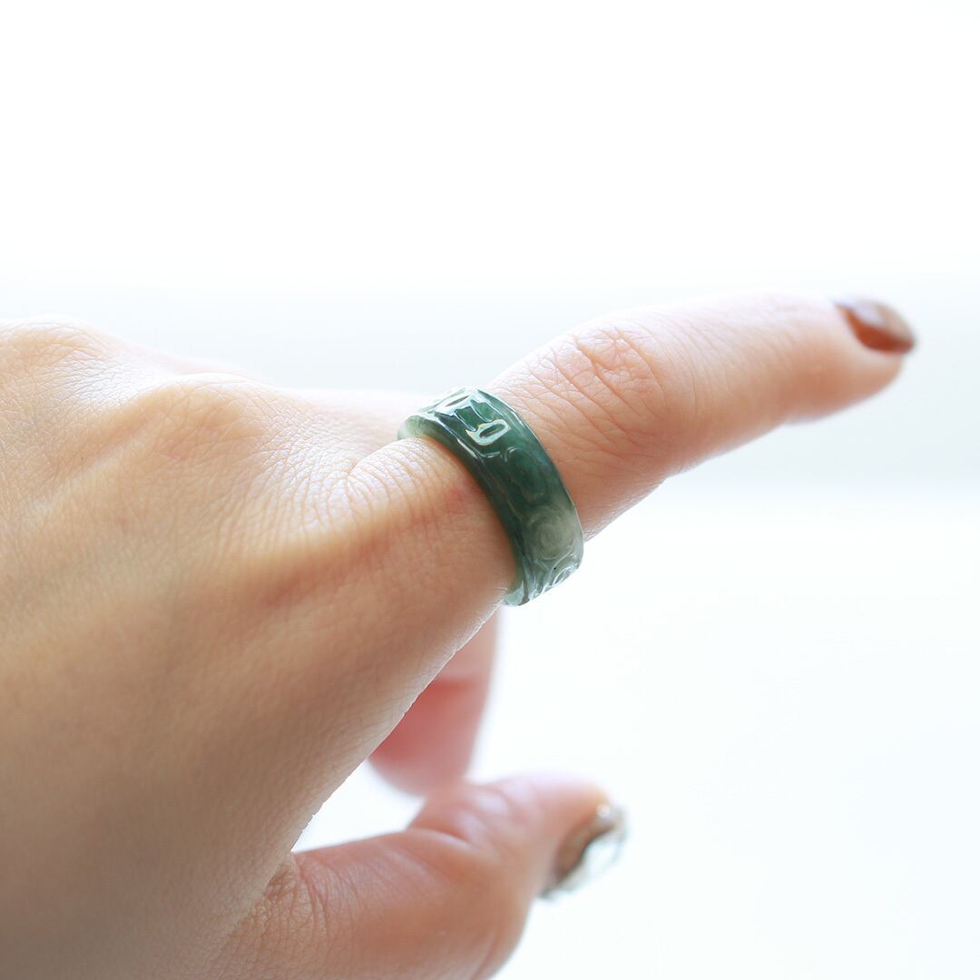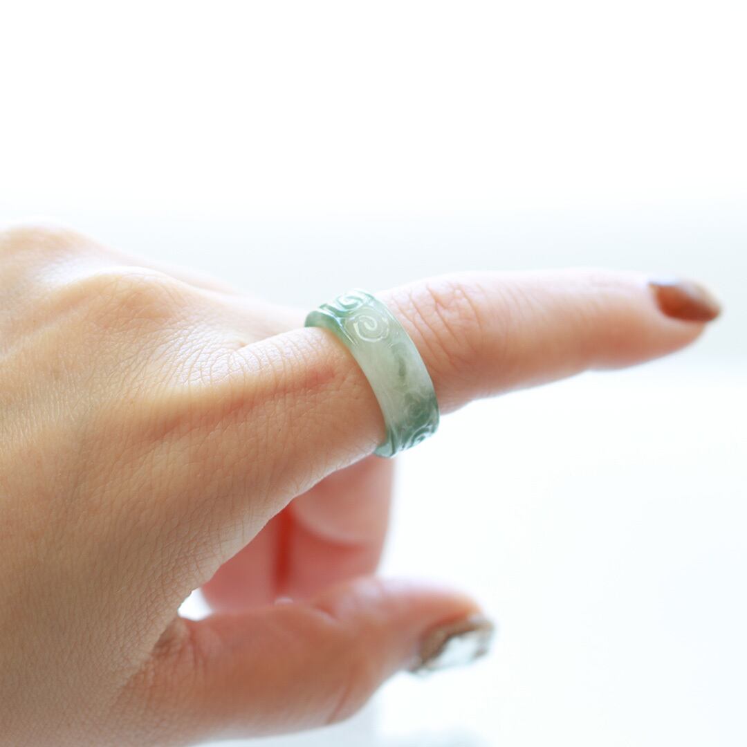 【13.5号】 Carving NyoYi 翡翠くり抜き甲丸リング A貨翡翠 jd_rg2513