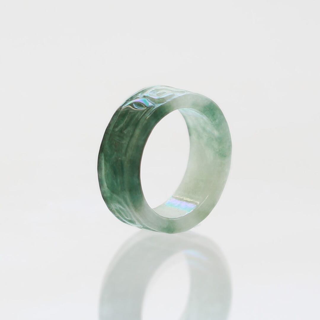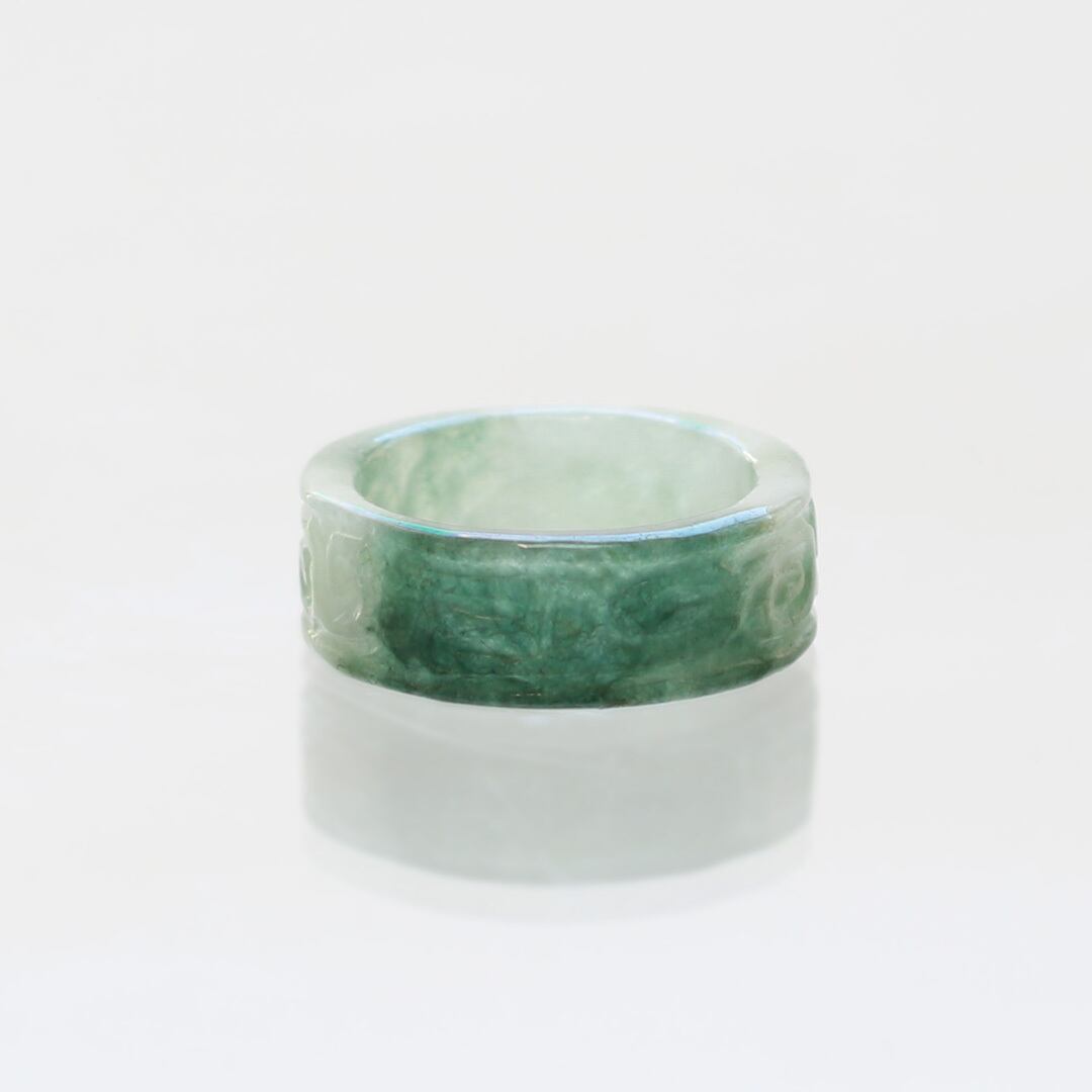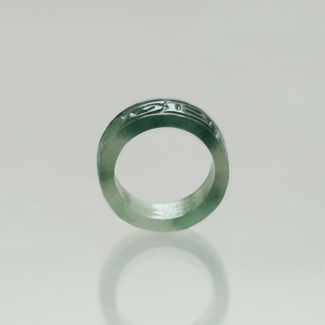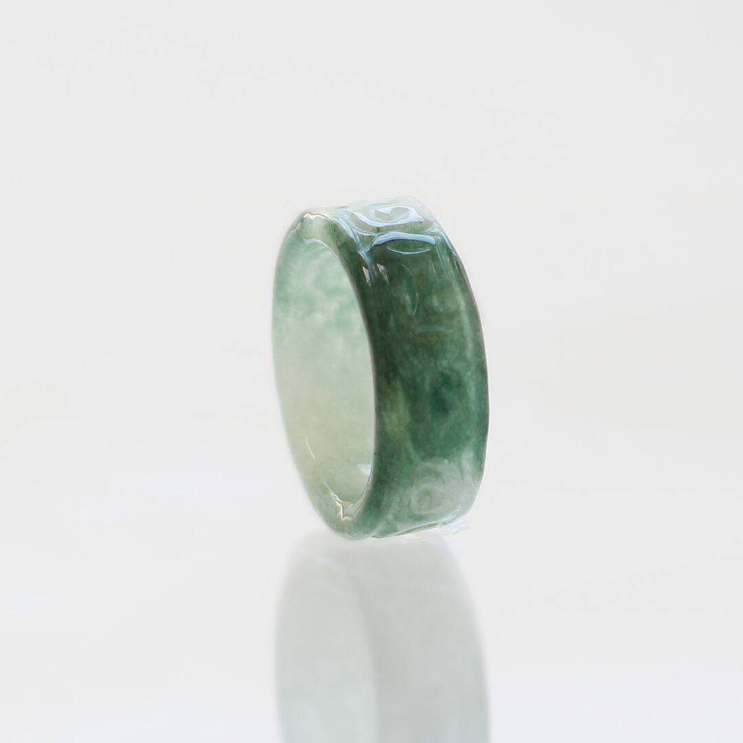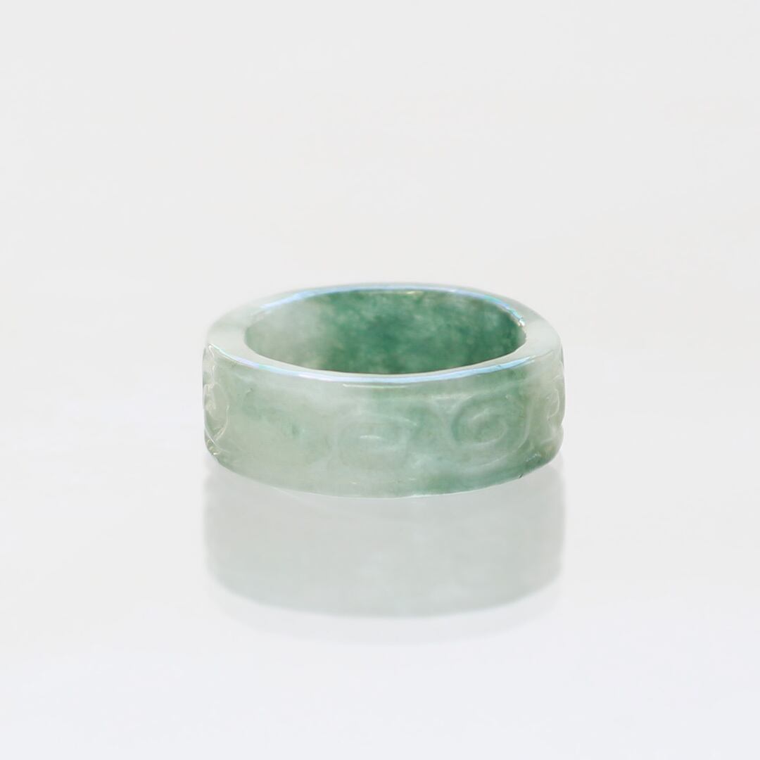 【13.5号】 Carving NyoYi 翡翠くり抜き甲丸リング A貨翡翠 jd_rg2513