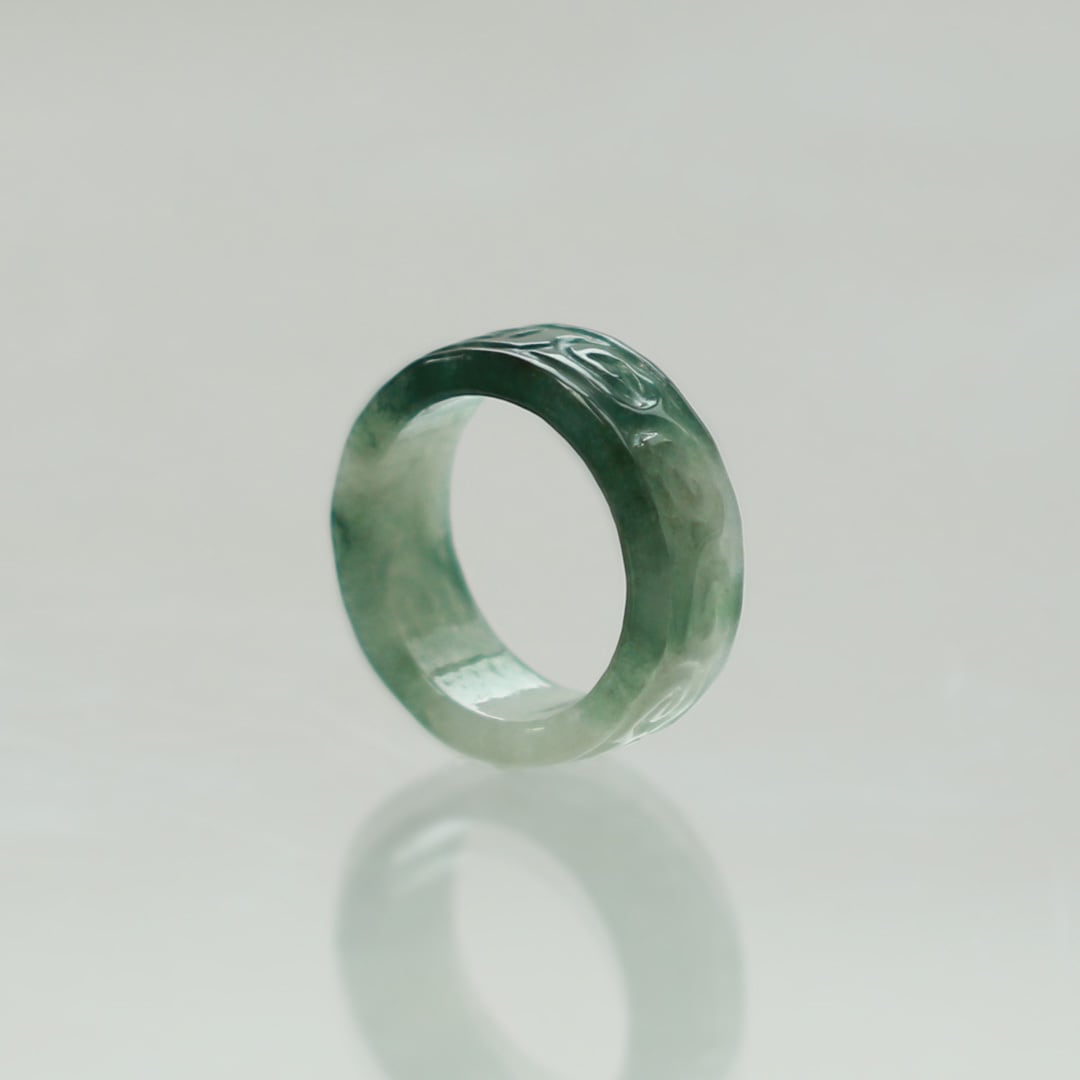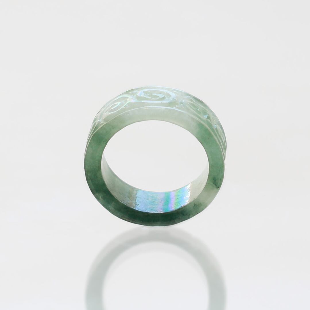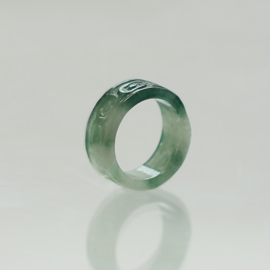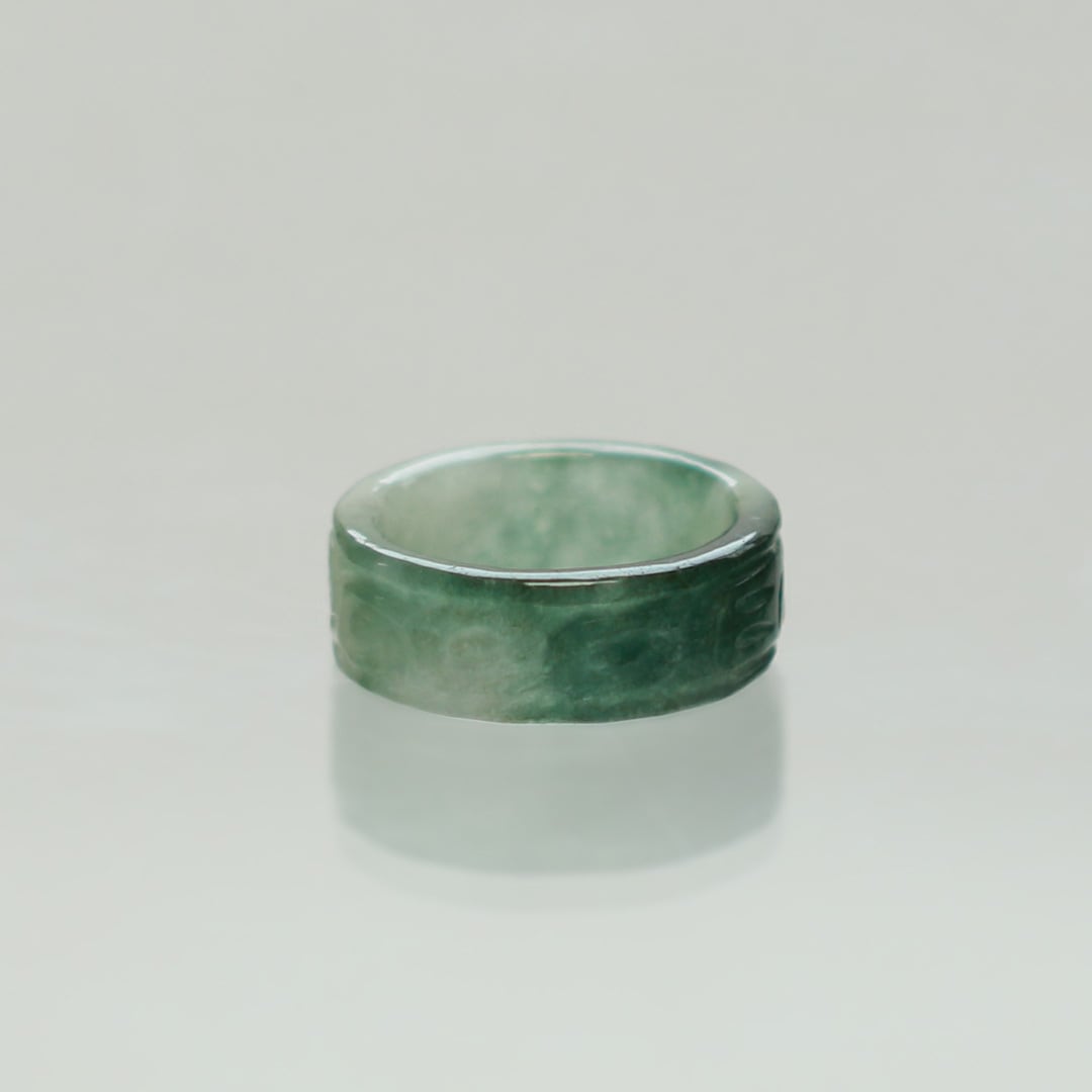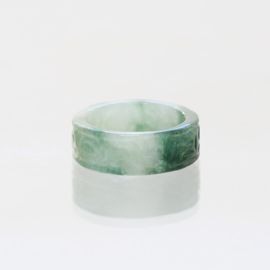 【13.5号】 Carving NyoYi 翡翠くり抜き甲丸リング A貨翡翠 jd_rg2513