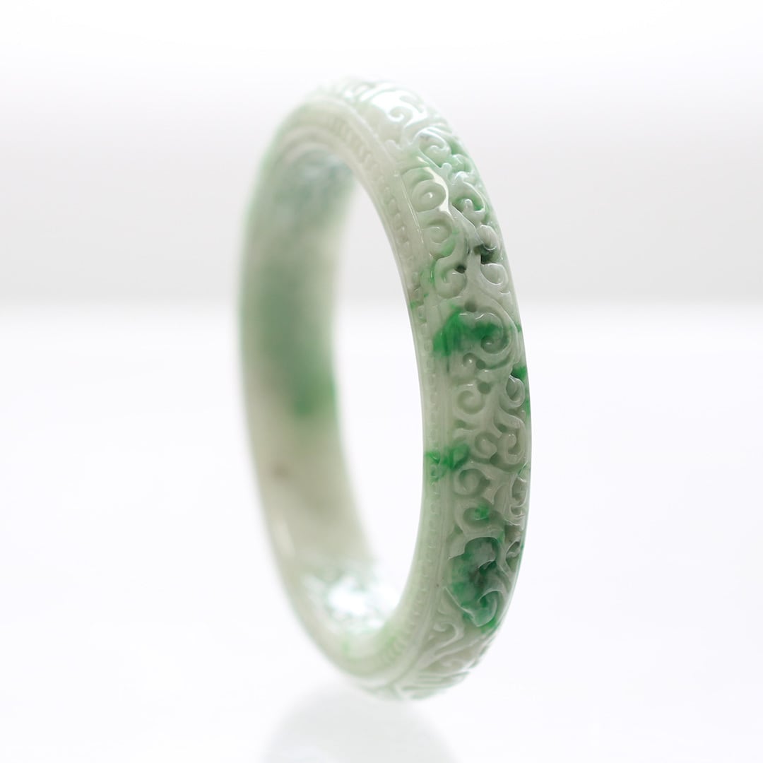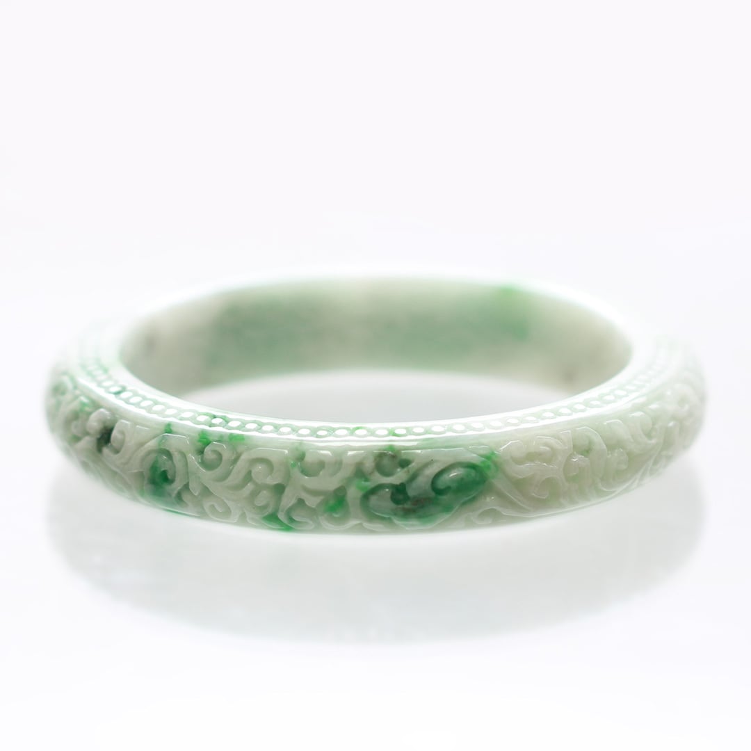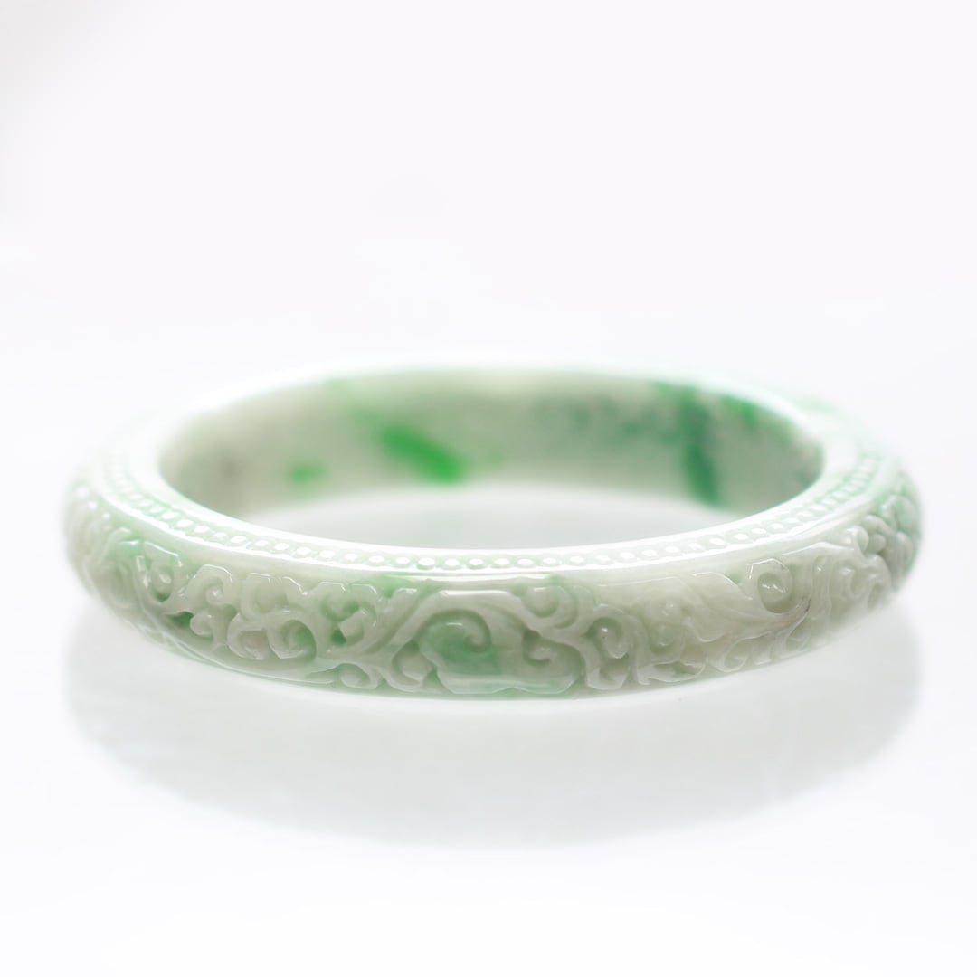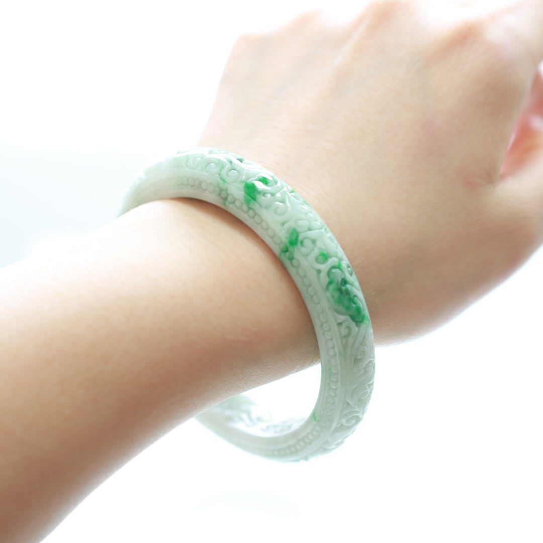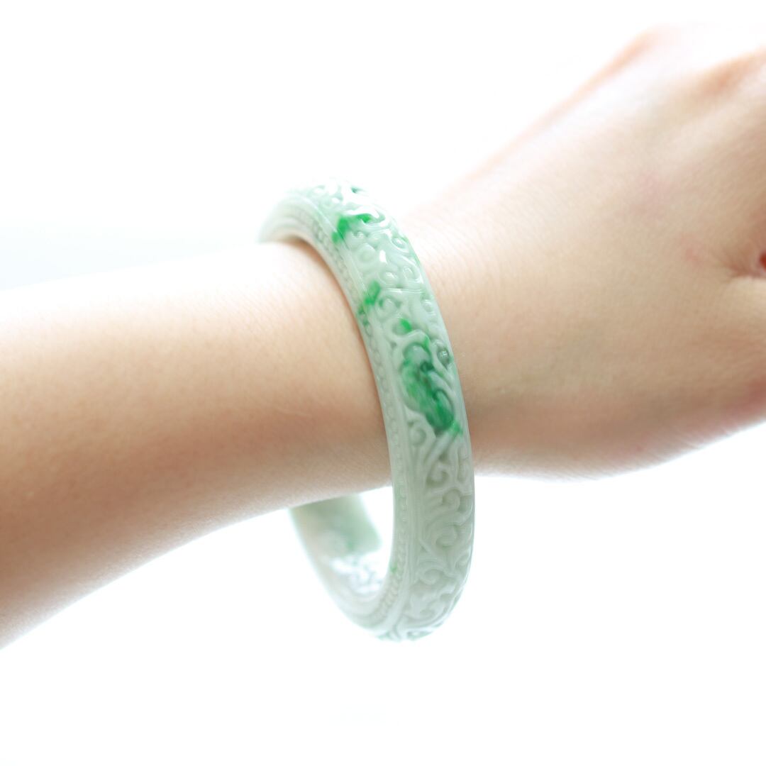 【内径 約59.5mm】 NyoYi Carving 翡翠バングル A貨翡翠 jd_bg1431