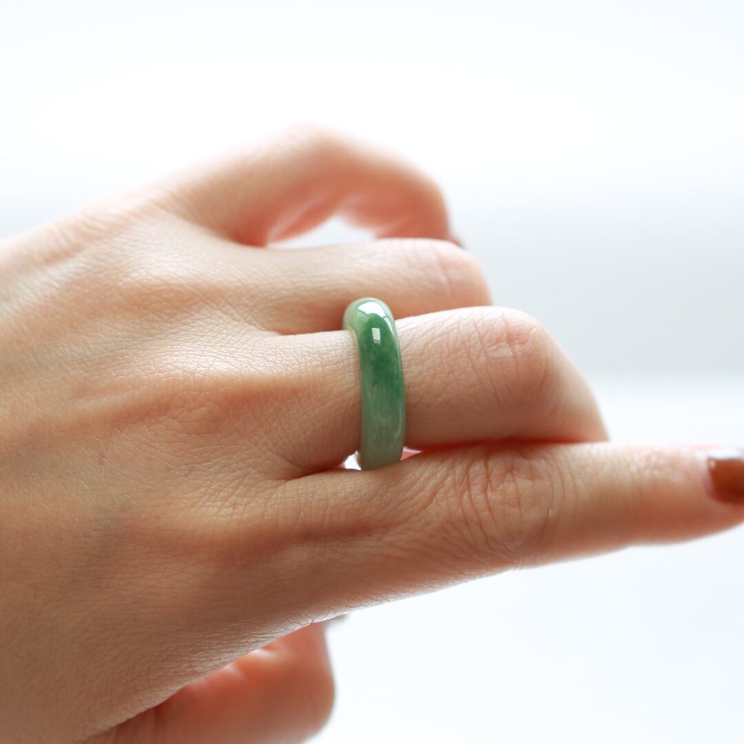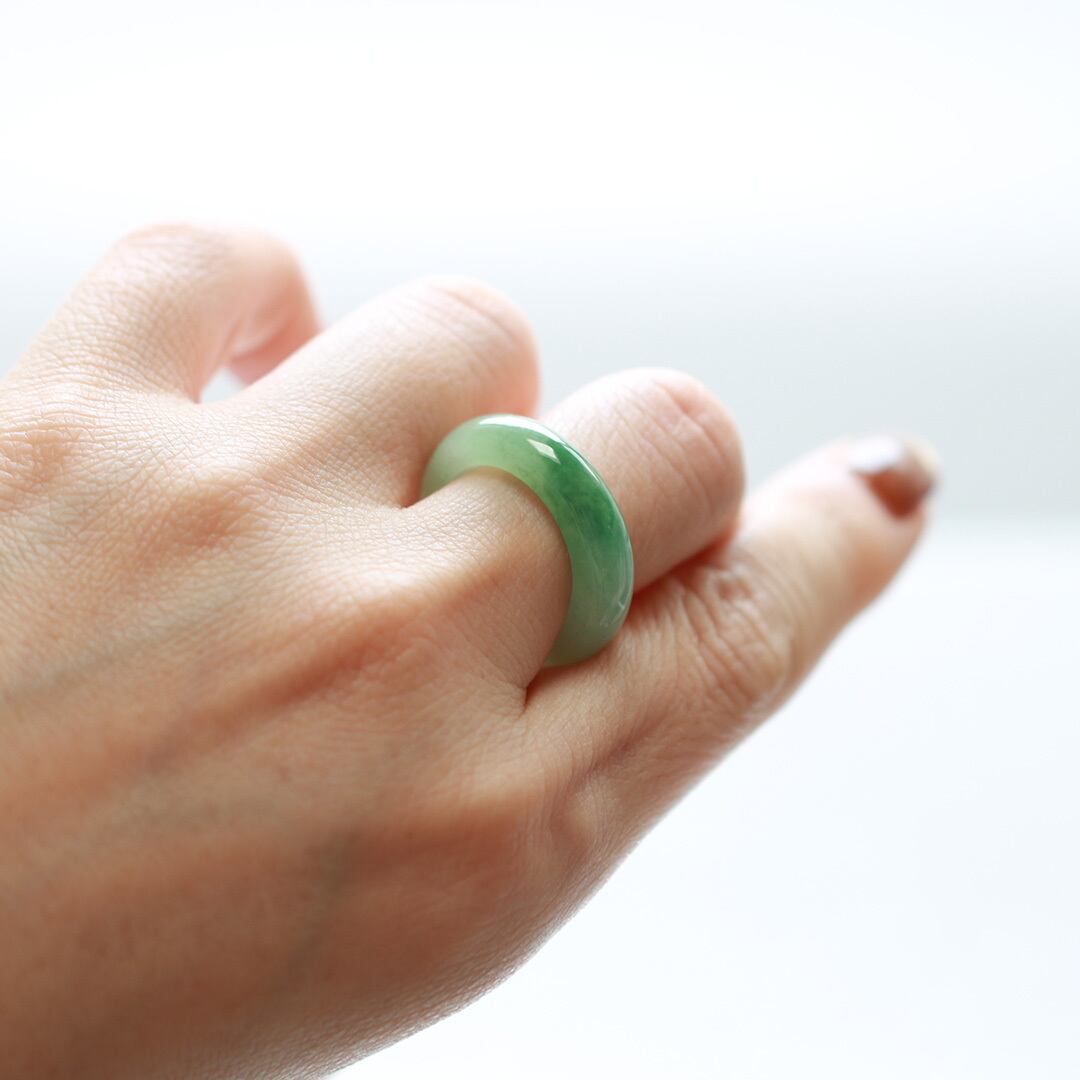 【13号】 clear green 翡翠くり抜き甲丸リング A貨翡翠 jd_rg2524
