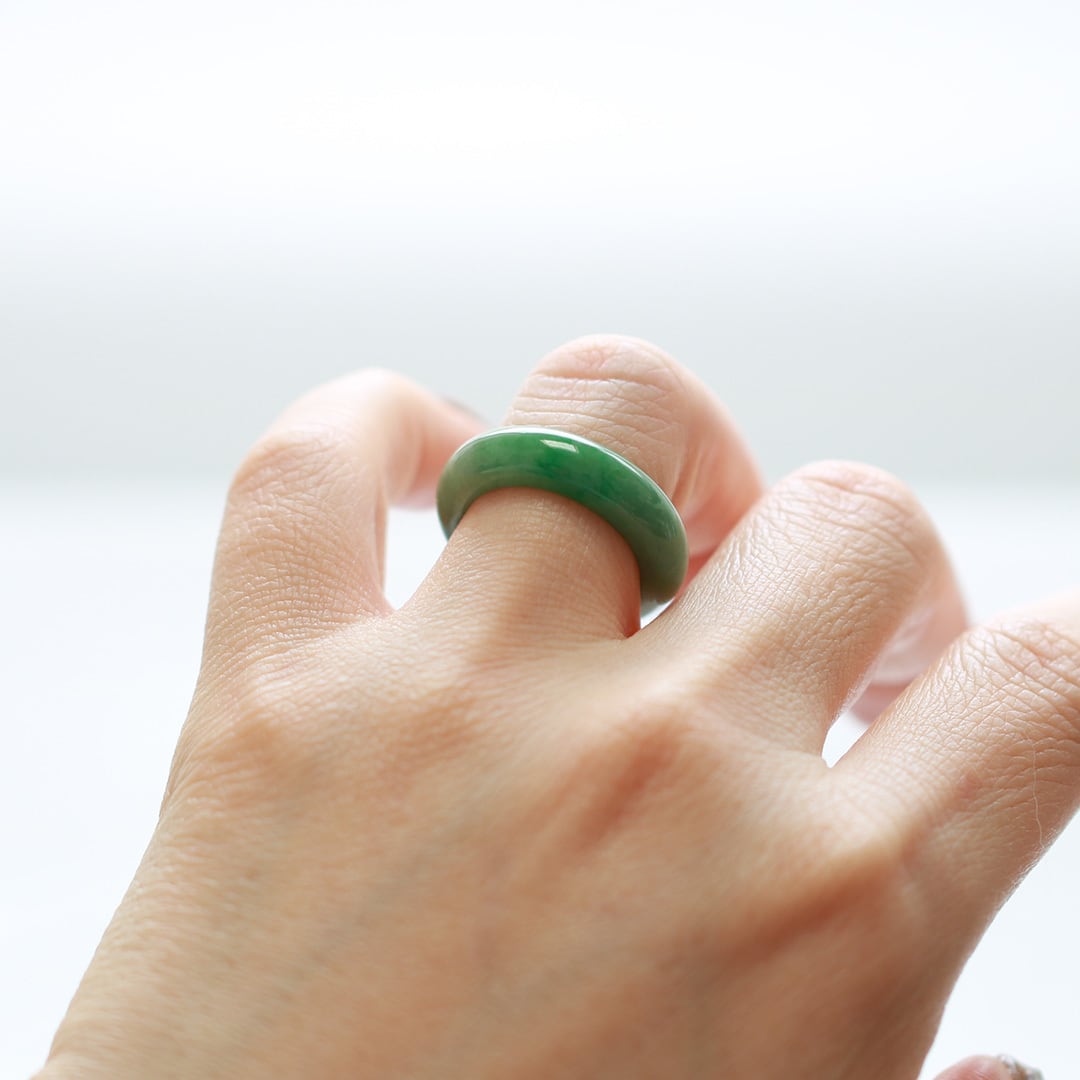 【13.5号】 green 翡翠くり抜き甲丸リング A貨翡翠 jd_rg2526