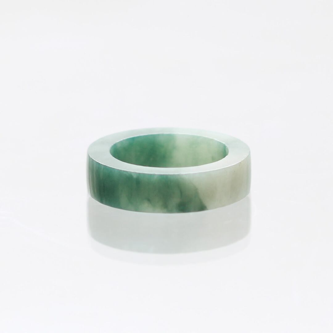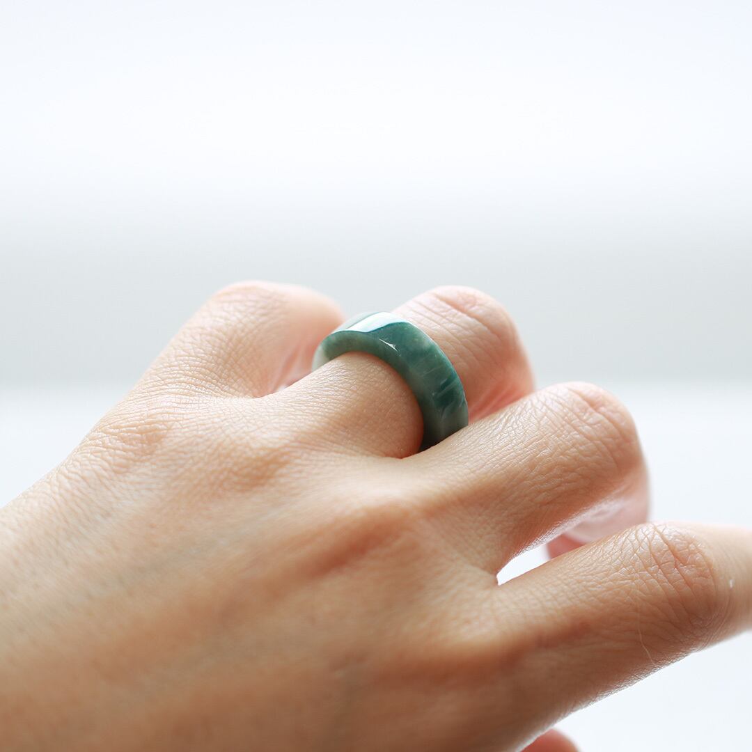 ホワイトにじんわりと広がるブルーがかったグリーンが目を惹くリング。