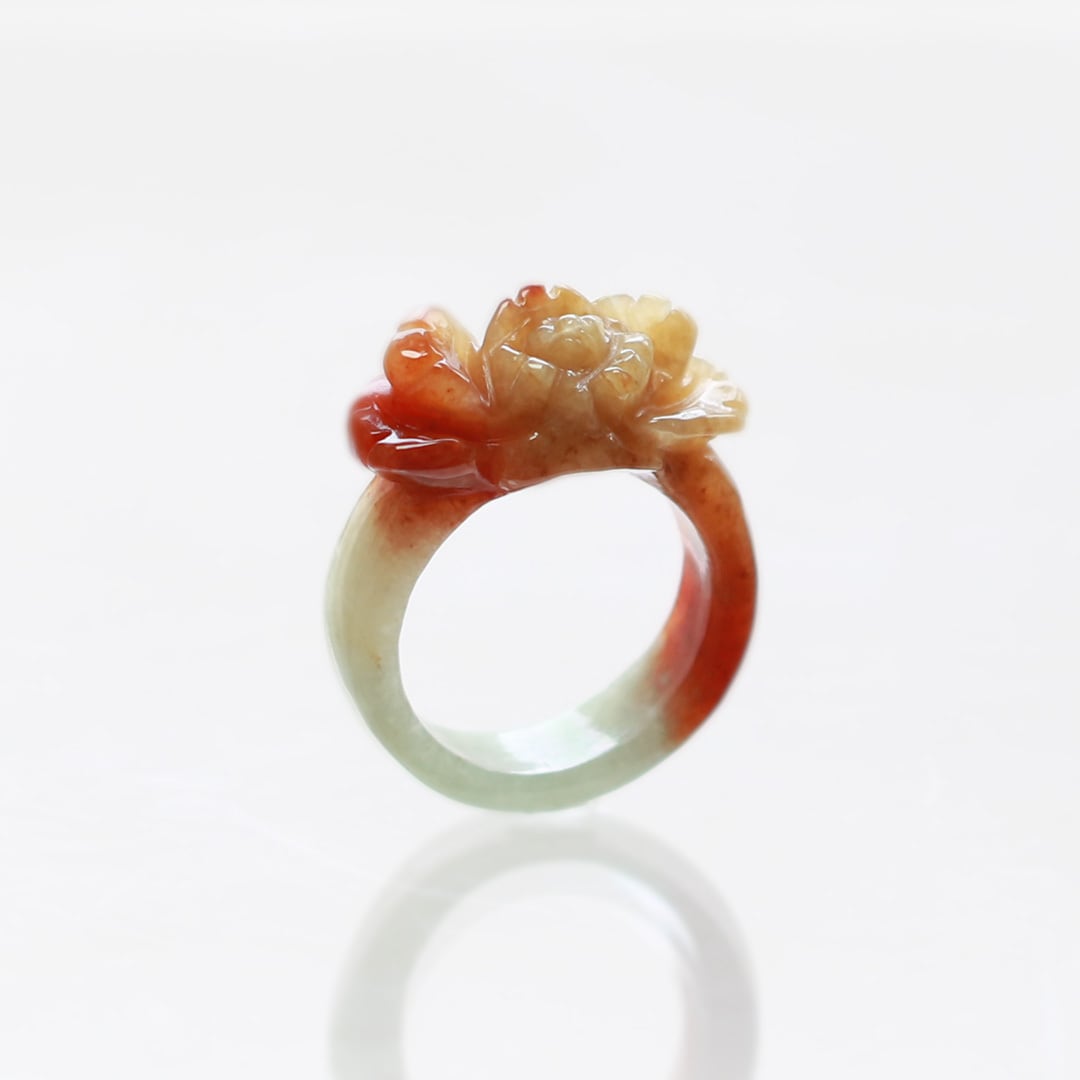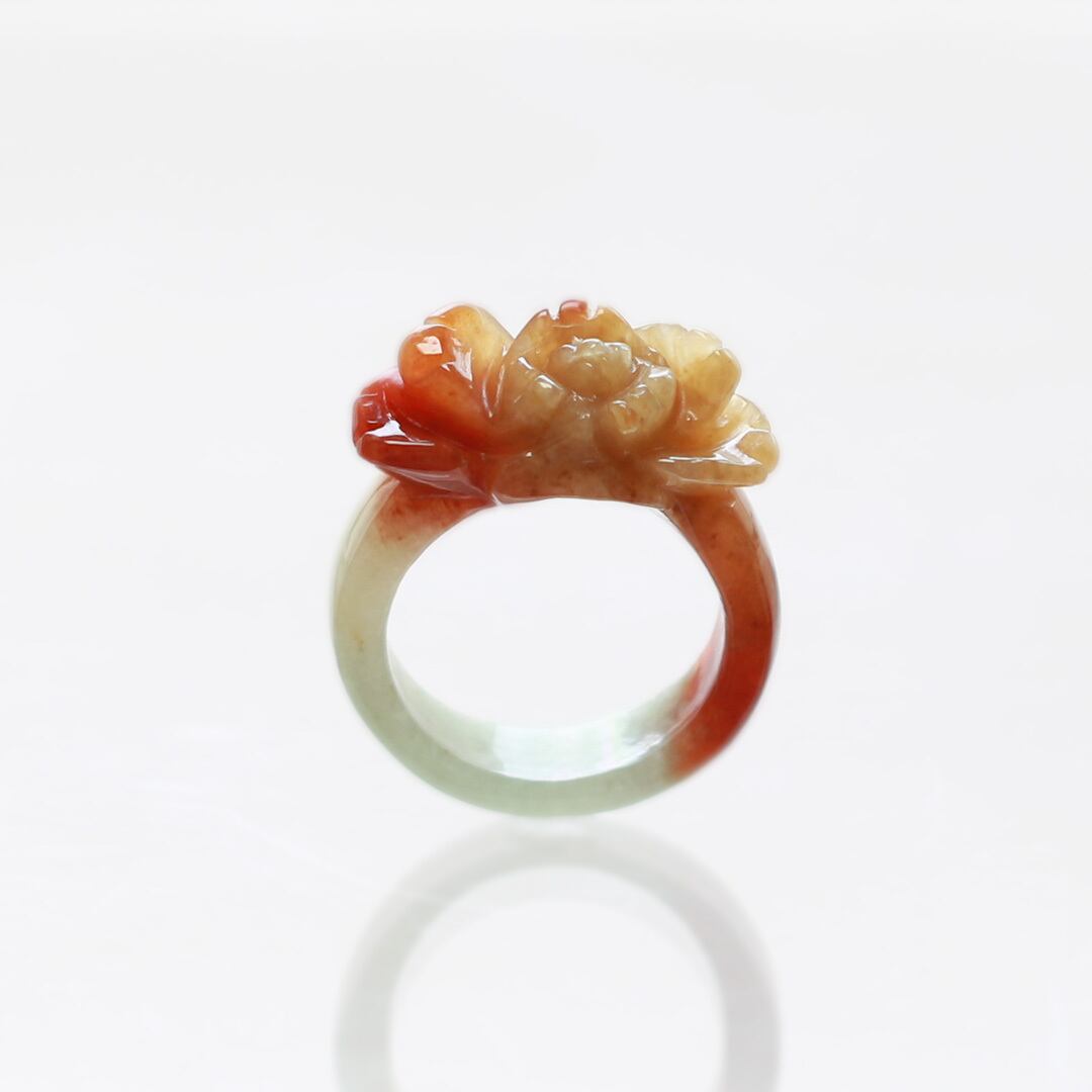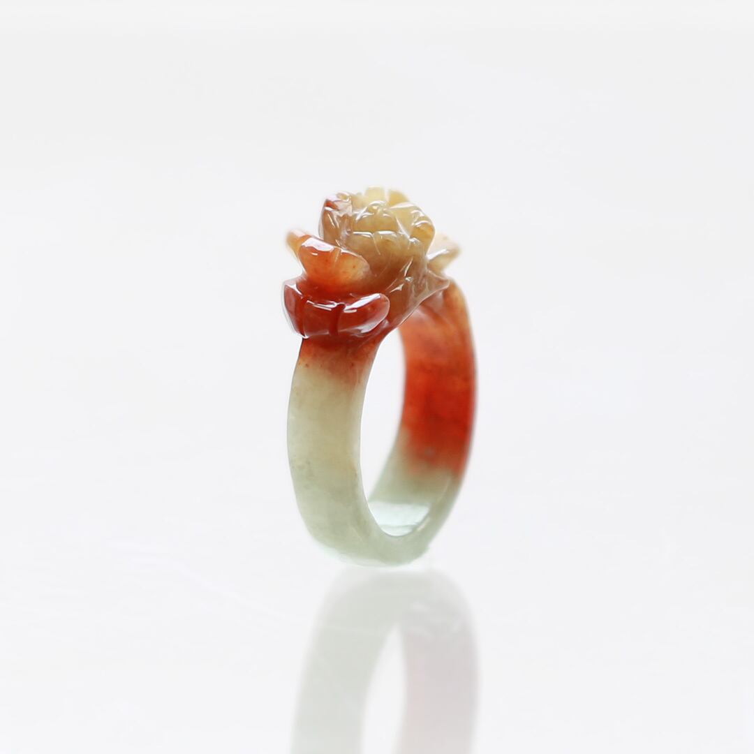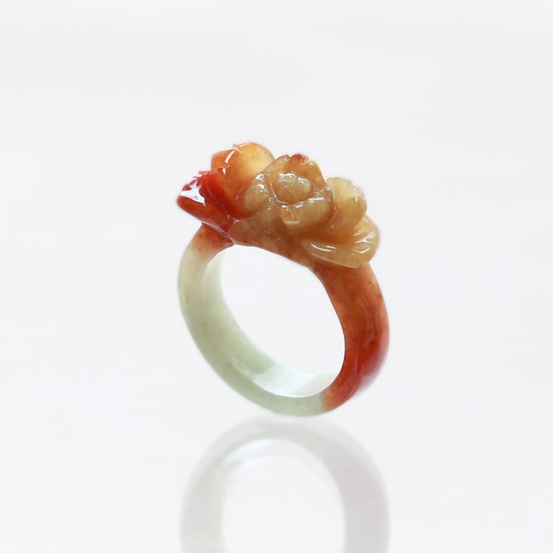 珍しい赤翡翠に立体的なお花の彫りを施した360°どこから見ても美しいデザイン!