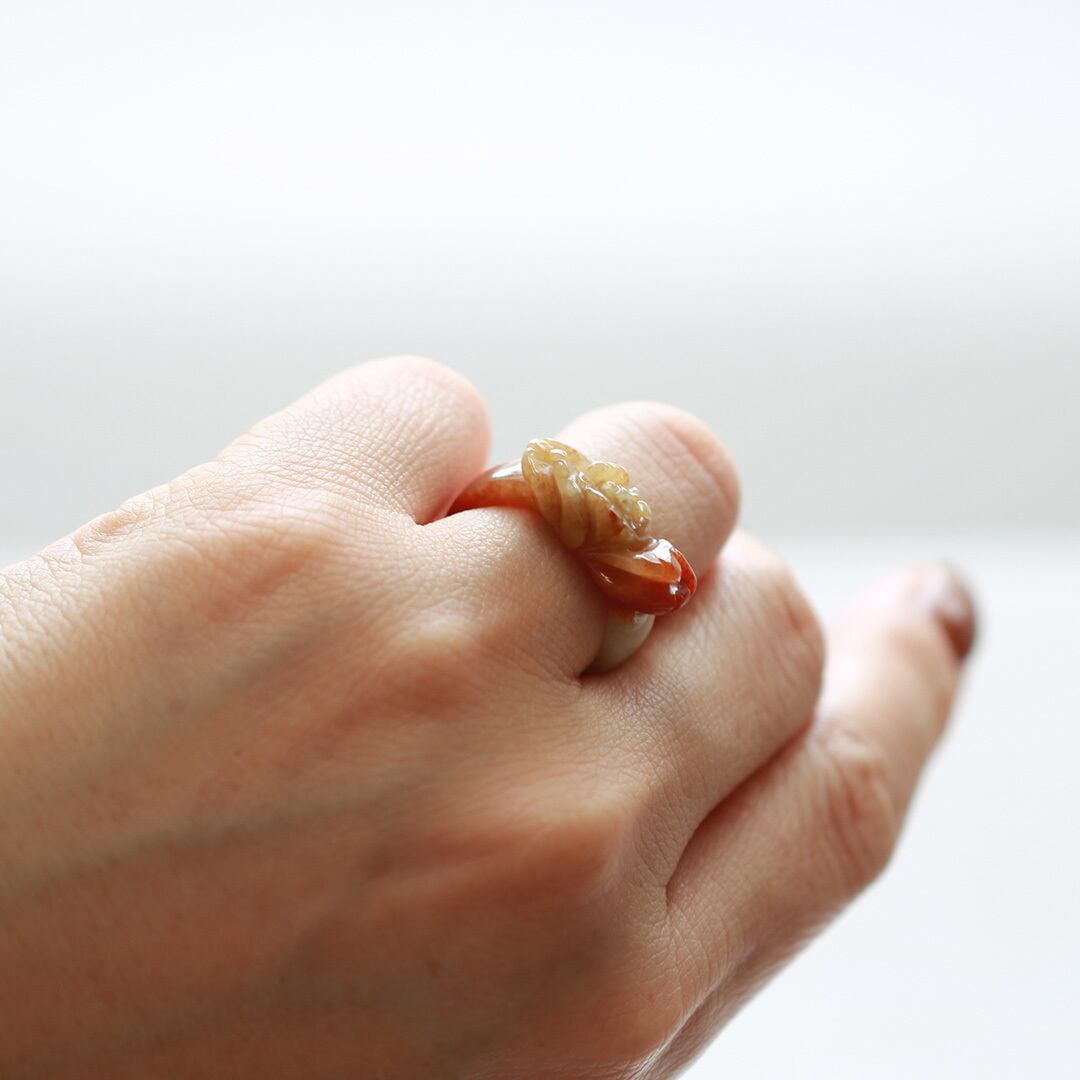 【10号】 red flower 翡翠くり抜き甲丸リング A貨翡翠 jd_rg2529