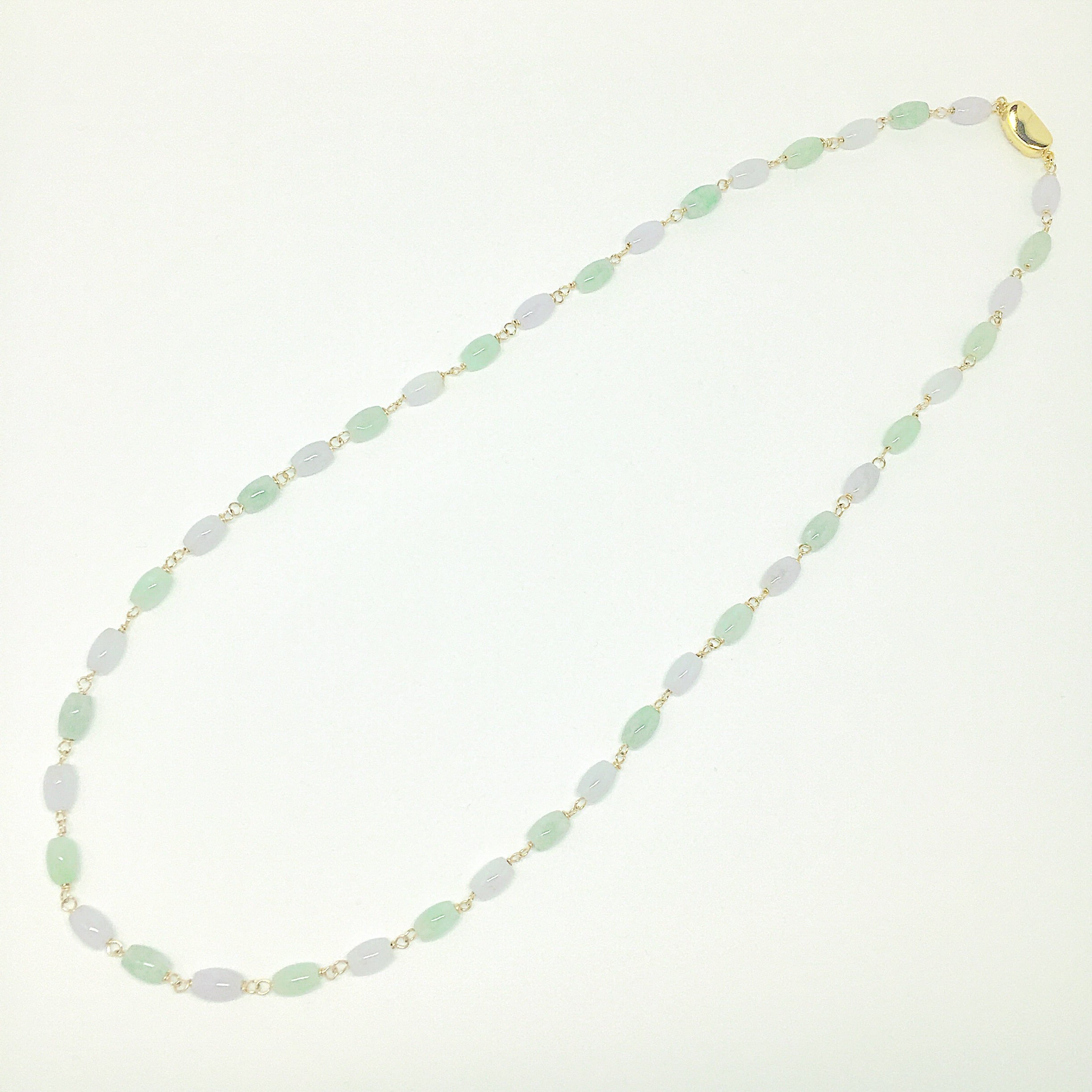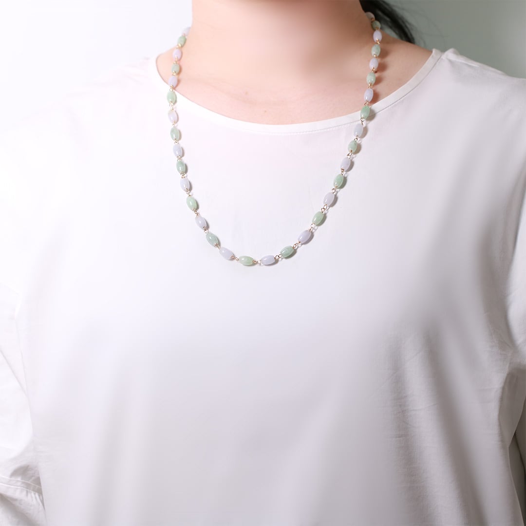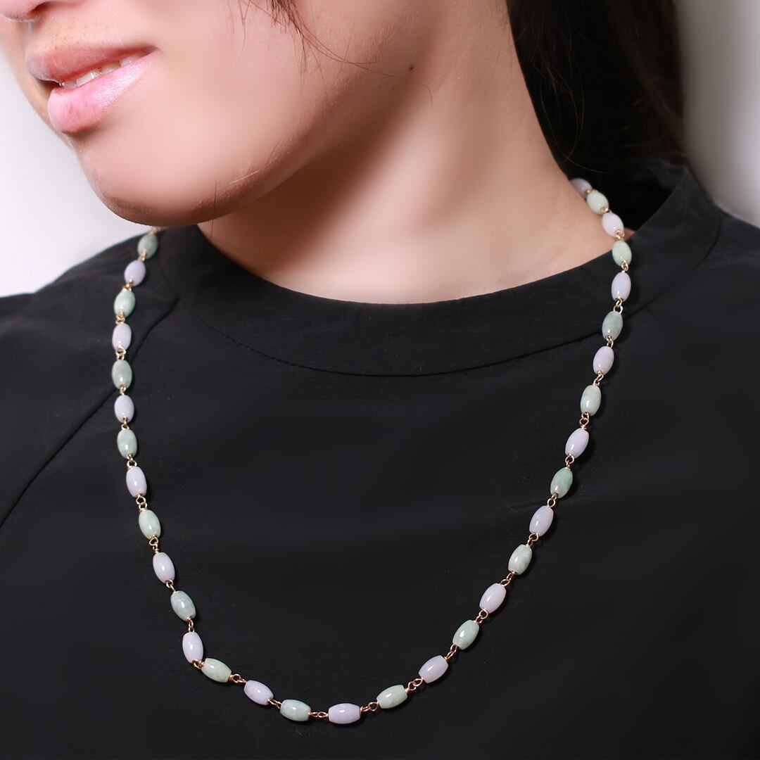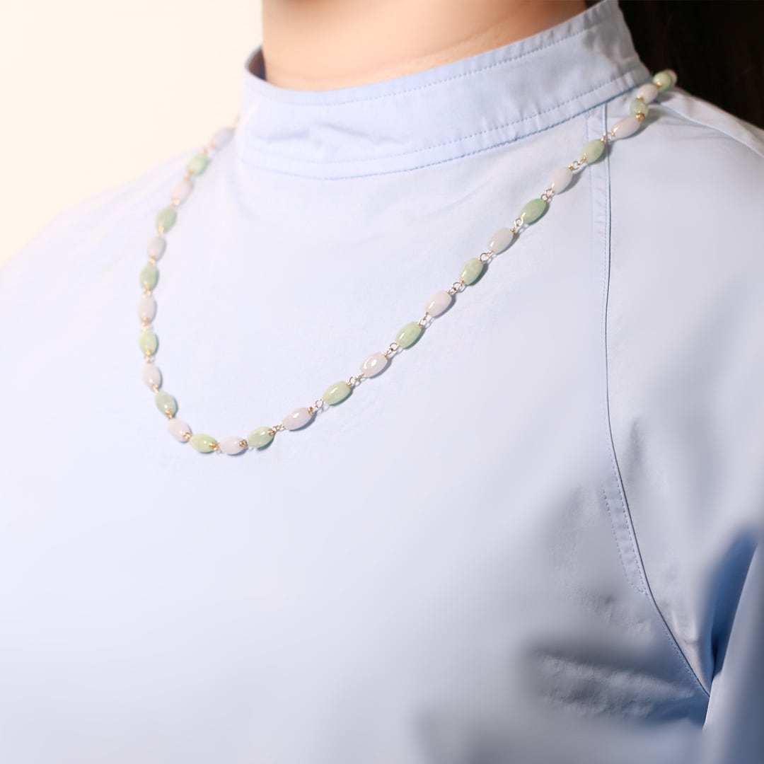 従来の翡翠のイメージを打ち破る バイカラーセミロングネックレス A貨翡翠 jd_ne1254