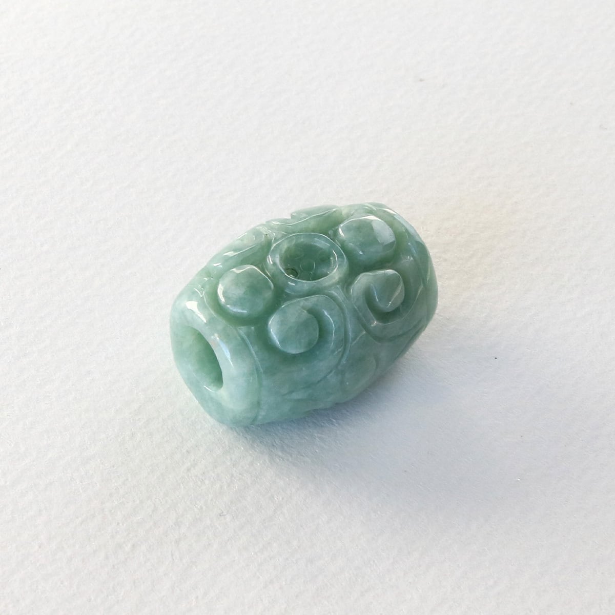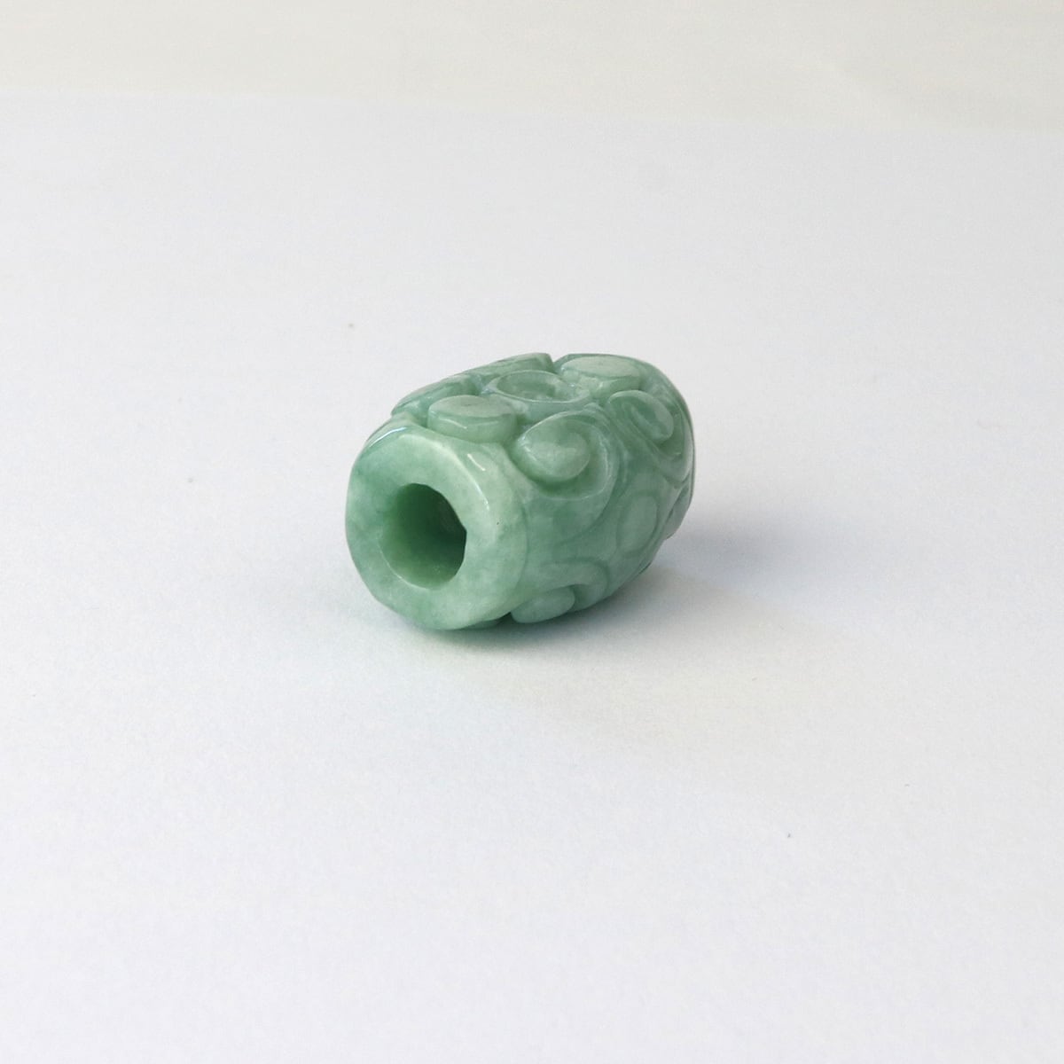 優しい柔らかい色味の翡翠に素敵な彫りを施したペンダントトップ。
