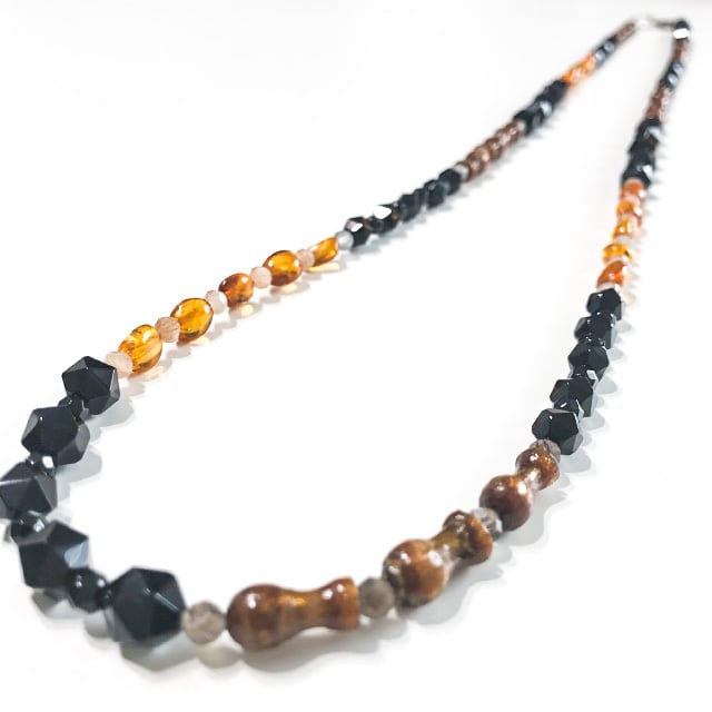 天然素材をミックスしたロングネックレス 琥珀ミックスネックレス ne1095