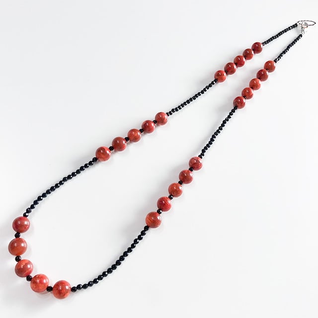 シンプルに楽しめるデザインネックレス! アップル珊瑚 オニキス シンプルネックレス ne1098