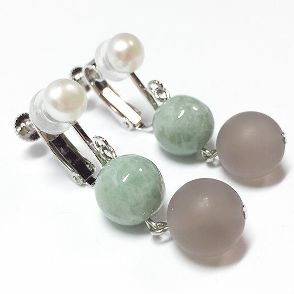 ナチュラルなニュアンスカラーが自慢! ニュアンスカラー イヤリング & ピアス A貨翡翠 jd_mm1044