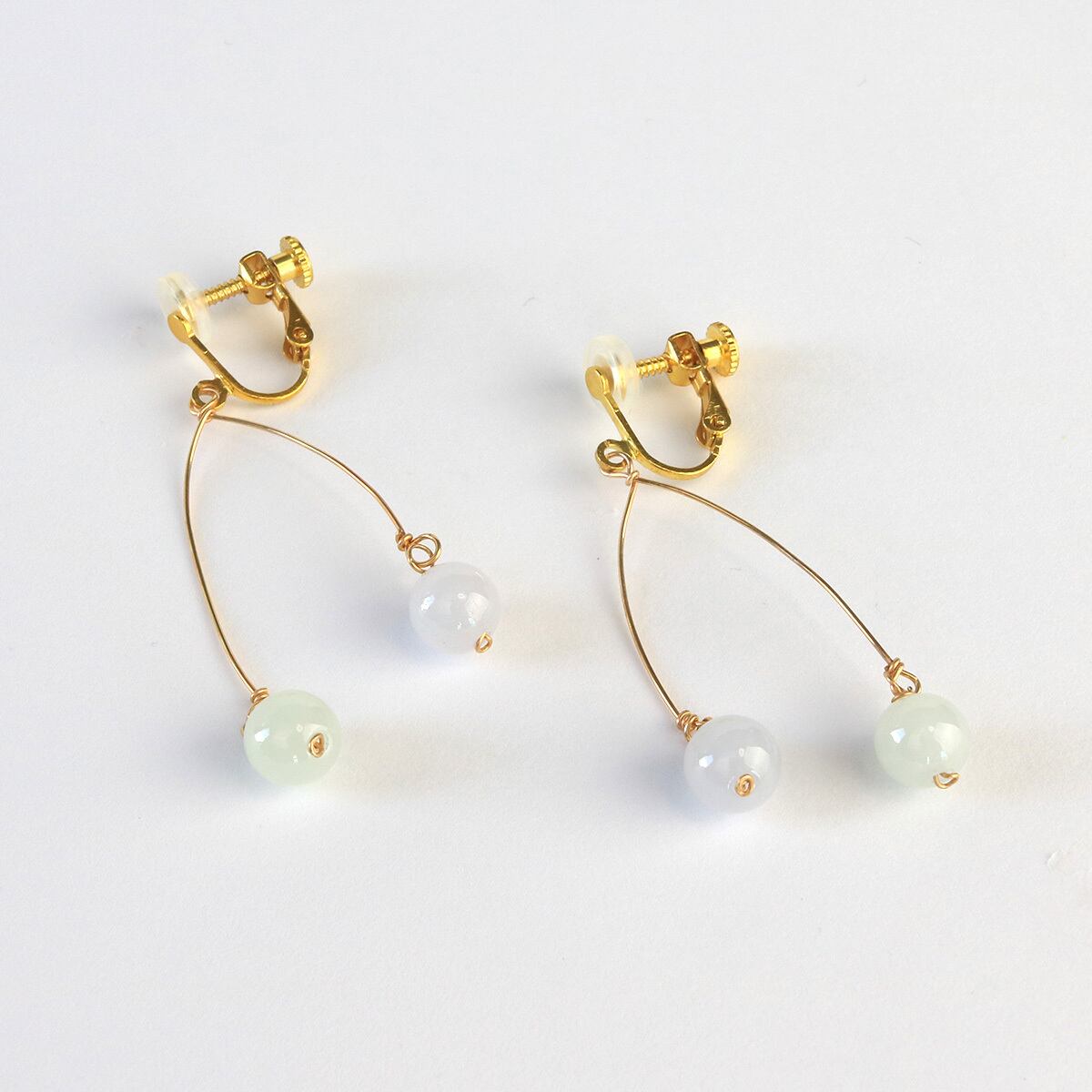 透明感がある翡翠でおしゃれなデザイン!在庫限り翡翠 フォークデザイン イヤリング A貨翡翠 sl3_6_20200428he09