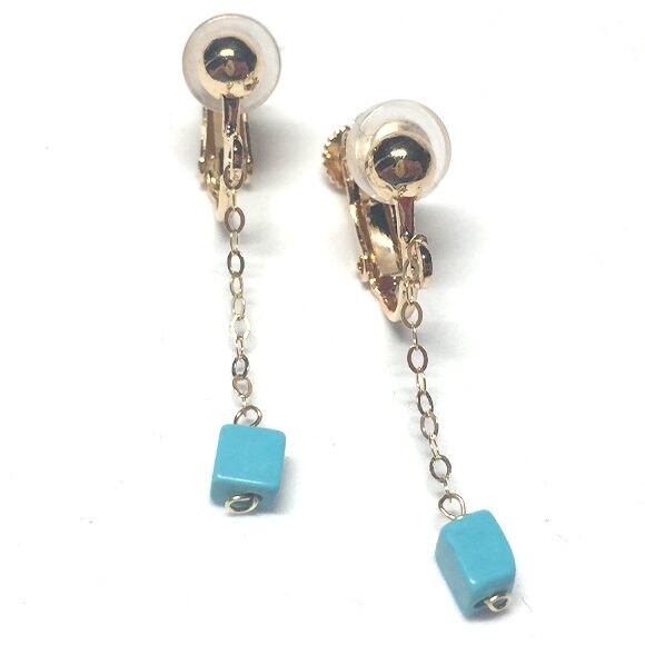 キューブターコイズ チェーンピアス&イヤリング mm1110