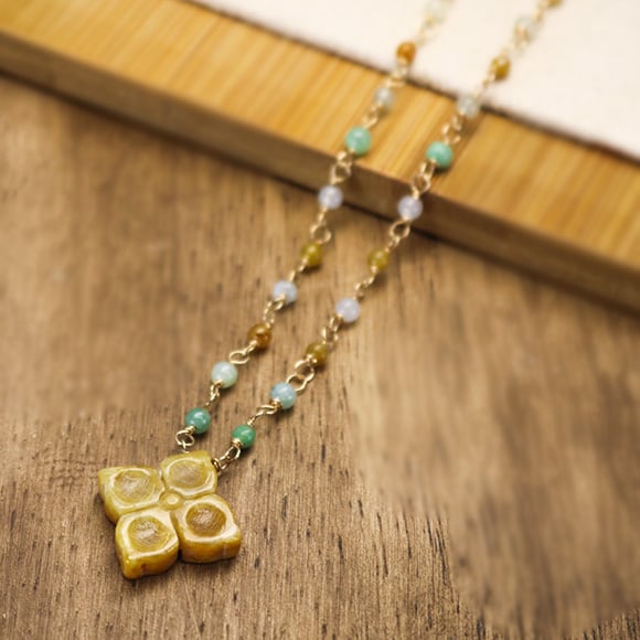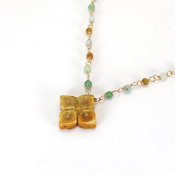 希少なカラーで大人かわいく!K14GF翡翠マルチカラーお花ペンダントネックレス A貨翡翠 jd_ne1084