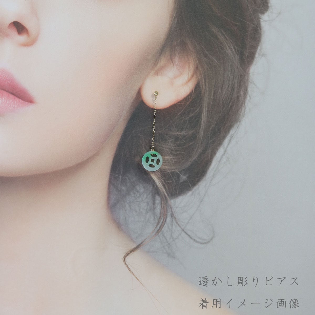 ミャンマー産翡翠 K14gf チェーン 翡翠透かし彫り ピアス A貨翡翠 jd_mm1003