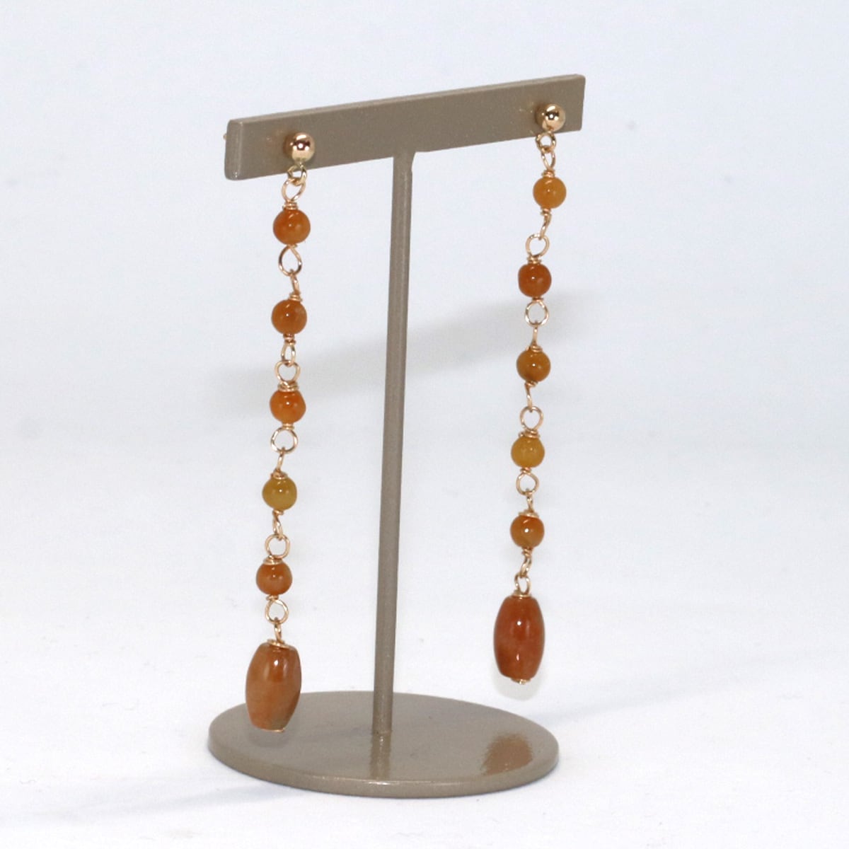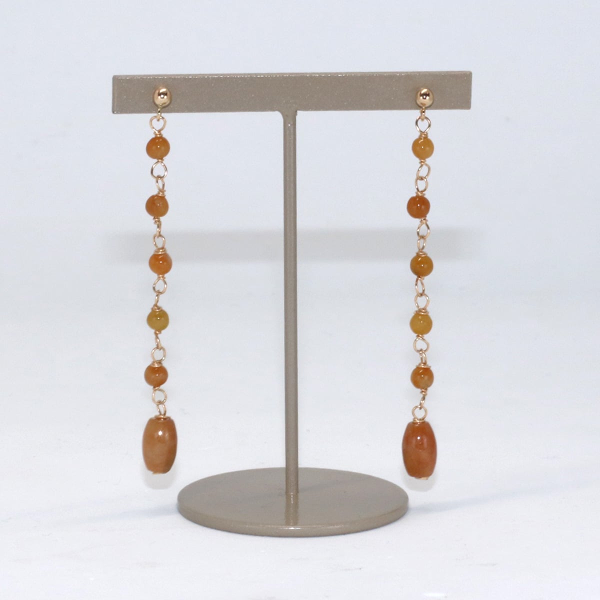 在庫限り翡翠アースカラー ロング ピアス A貨翡翠 mm102