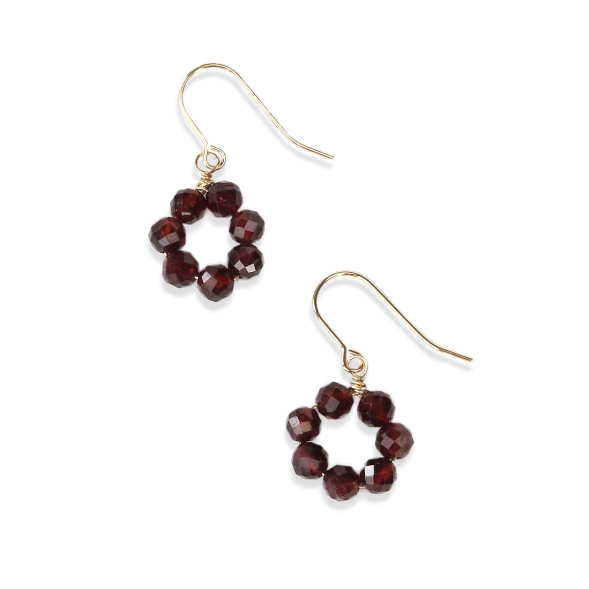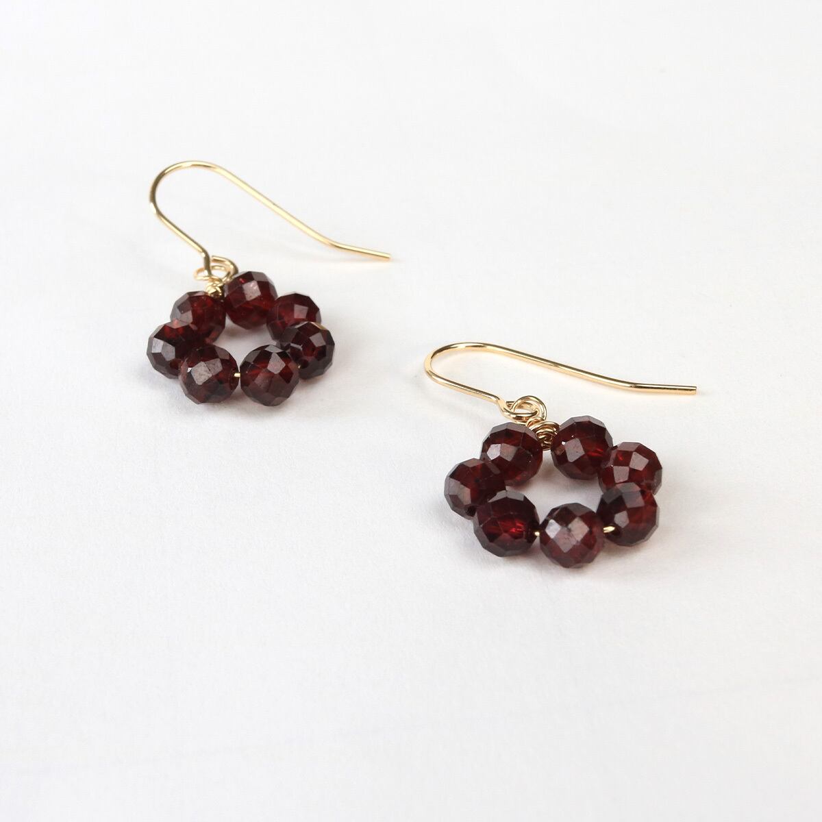 ワイレッドが特徴的なお花柄!ガーネット お花モチーフ イヤリング & ピアス mm1079