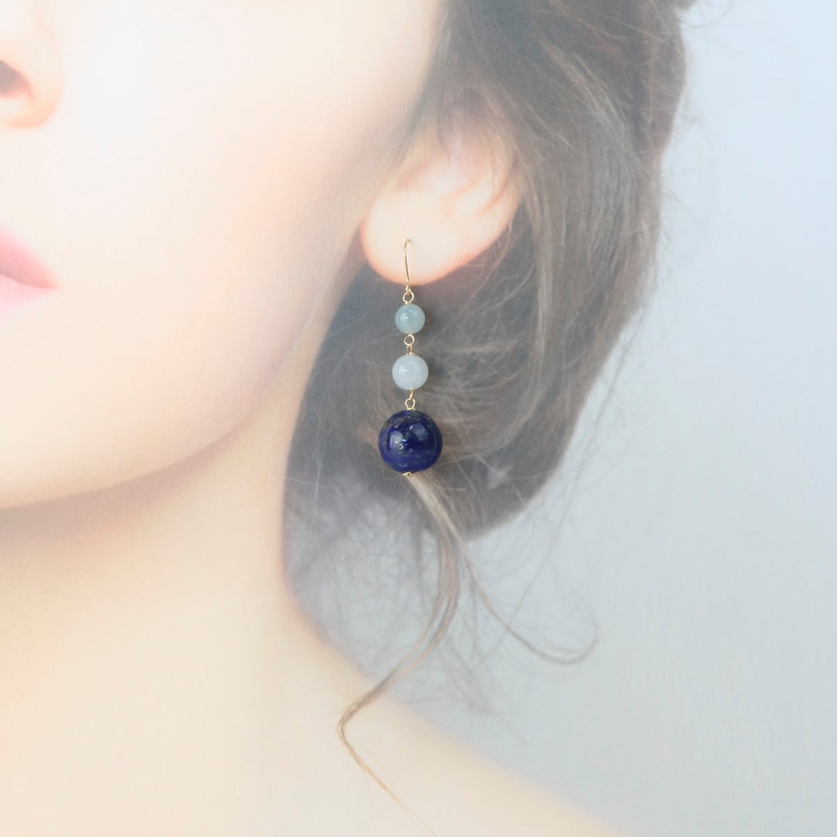 グラデーション翡翠とラピスラズリがインパクト! イヤリング & ピアス A貨翡翠 mm1077