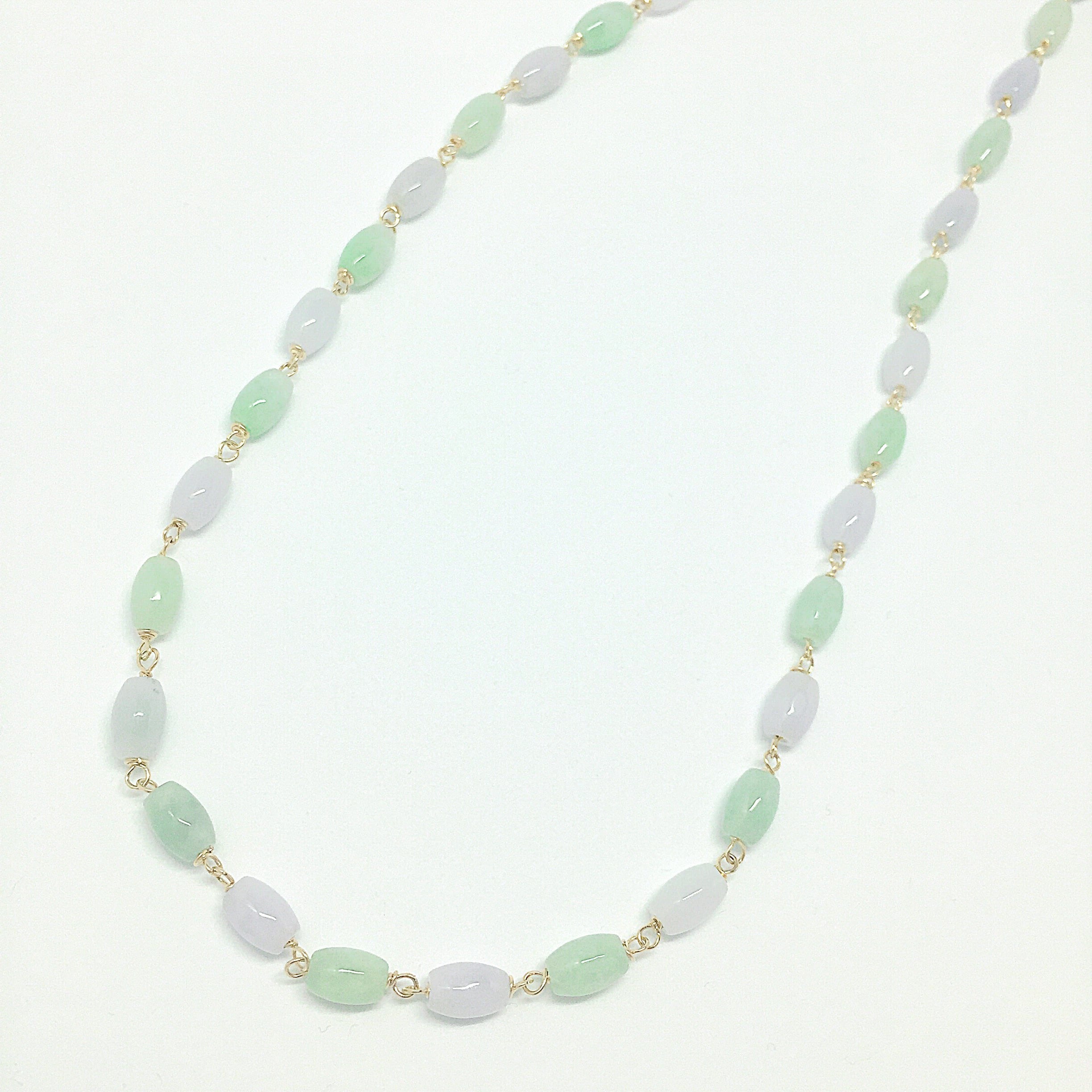 在庫限り 落ち着いたお色味で上品 バイカラーセミロングネックレス A貨翡翠 jd_ne1079
