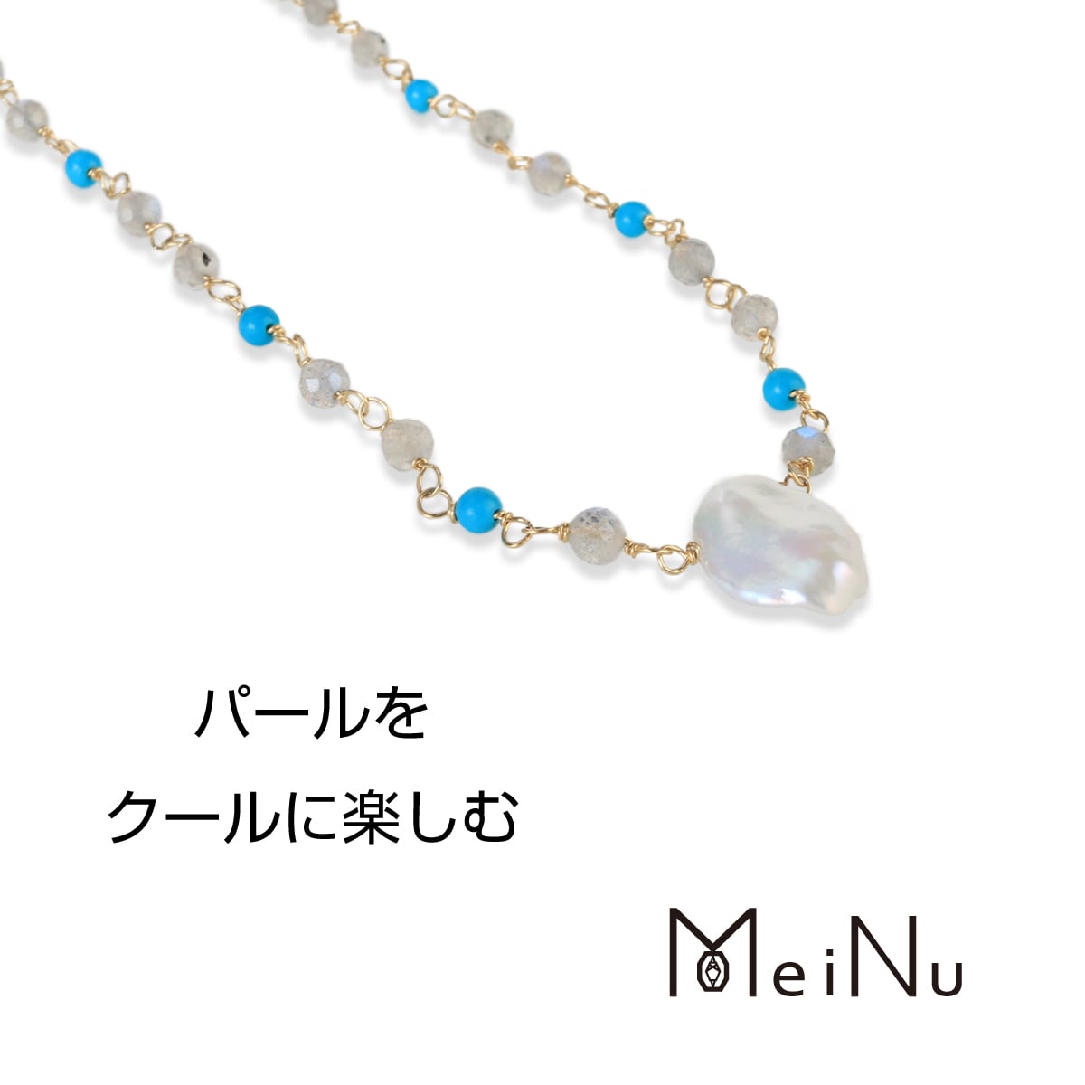ターコイズがポイント! パールトップ ターコイズxラブラド メガネ留め ネックレス ne1012