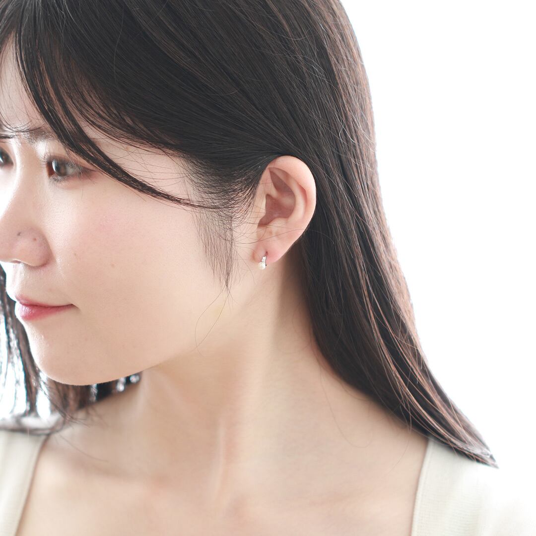 シルバー パール&キラキラ ピアス simple silver series mm1054
