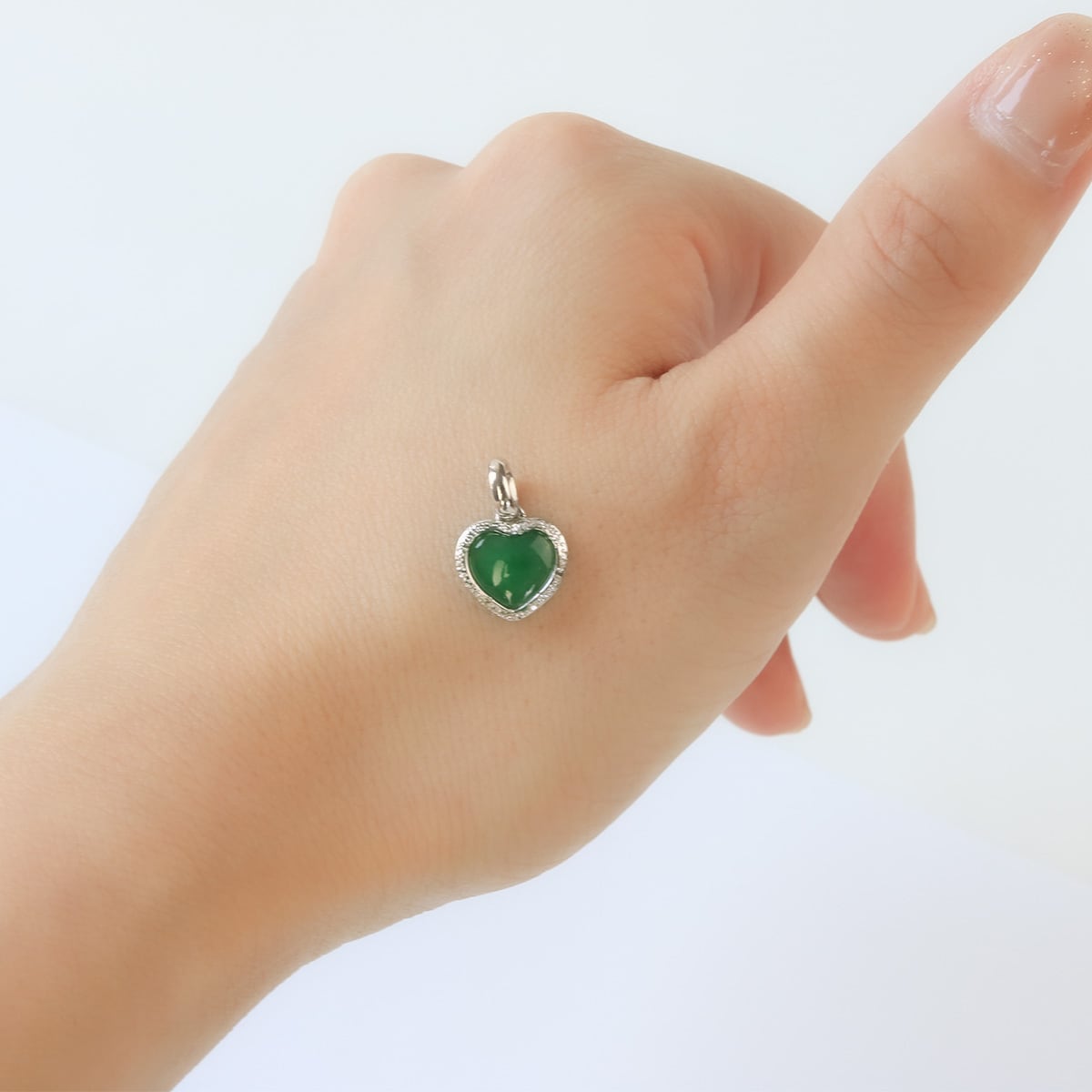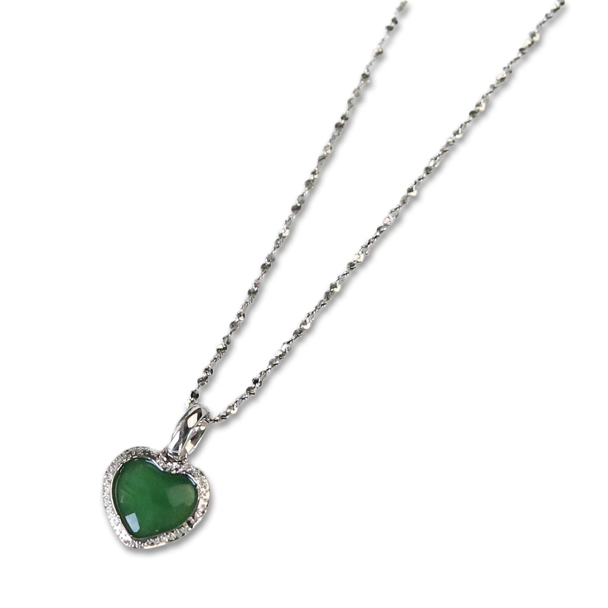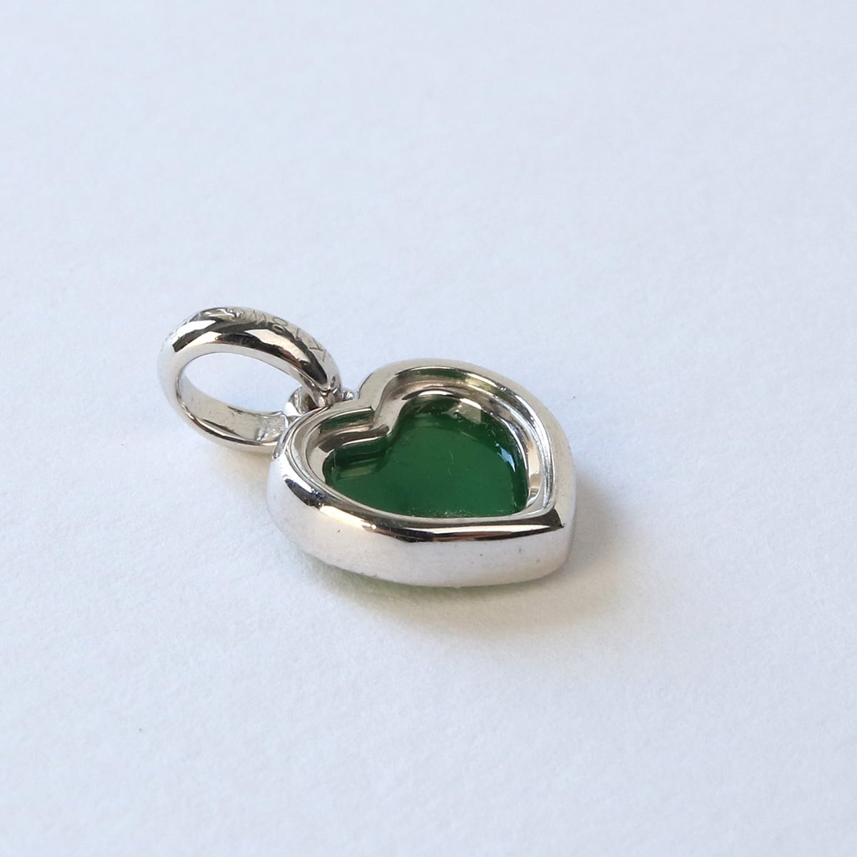 深緑が特徴的ペンダント K18WG 緑翠心 ハート ペンダント トップ A貨翡翠 jd_pt1056 CO
