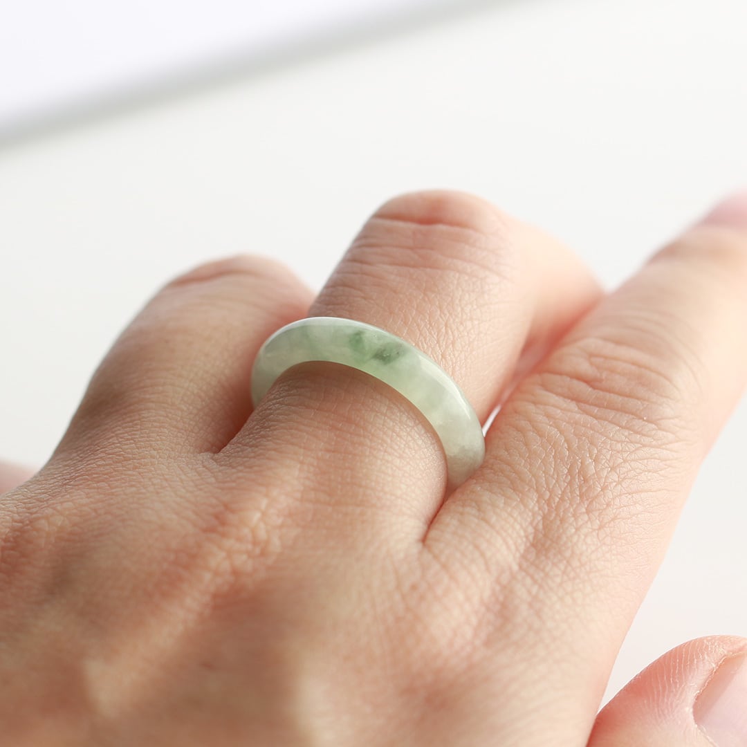 翡翠くり抜きリングは厚みがあるため、普段の号数より1〜2号ほど大きめのサイズをおススメ致します。
