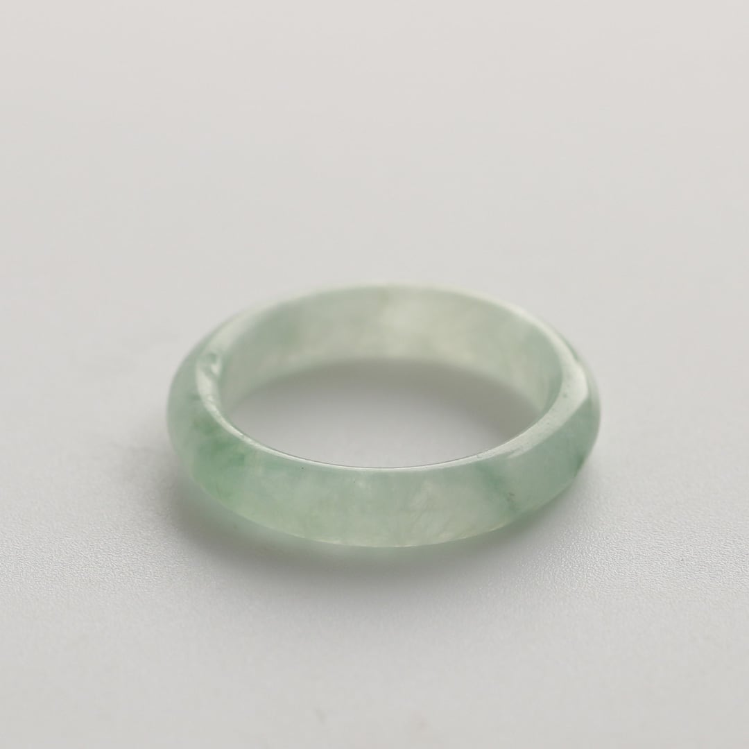 【17号】光が差し込む天然翡翠リング 白翡翠 くり抜き甲丸リング A貨翡翠 jd_rg1480