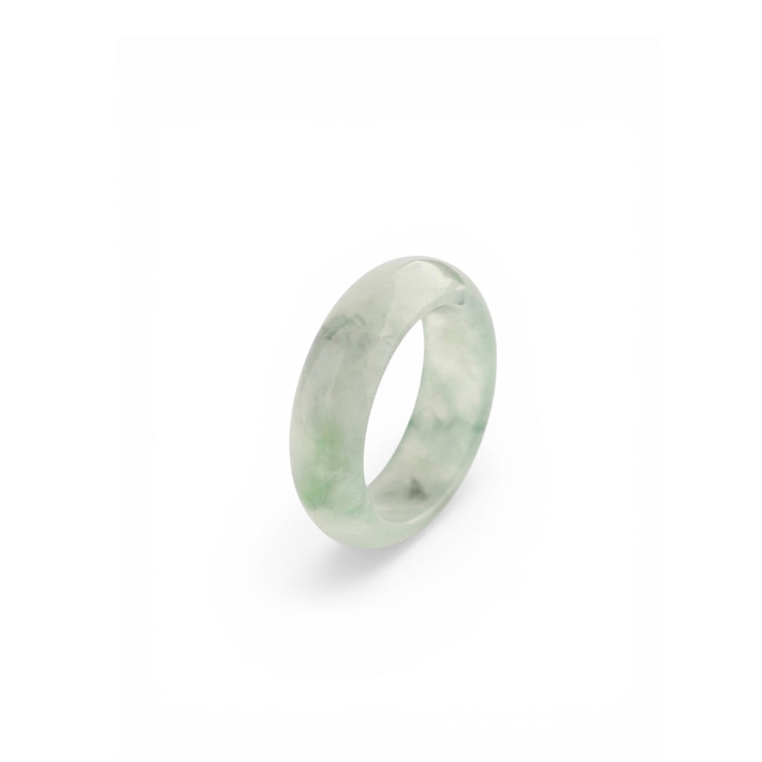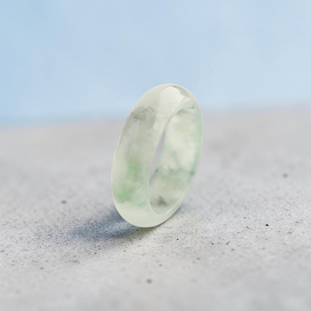 【16.5号】トゥルンとした白氷翡翠 薄緑 くり抜き甲丸リング A貨翡翠 jd_rg1486