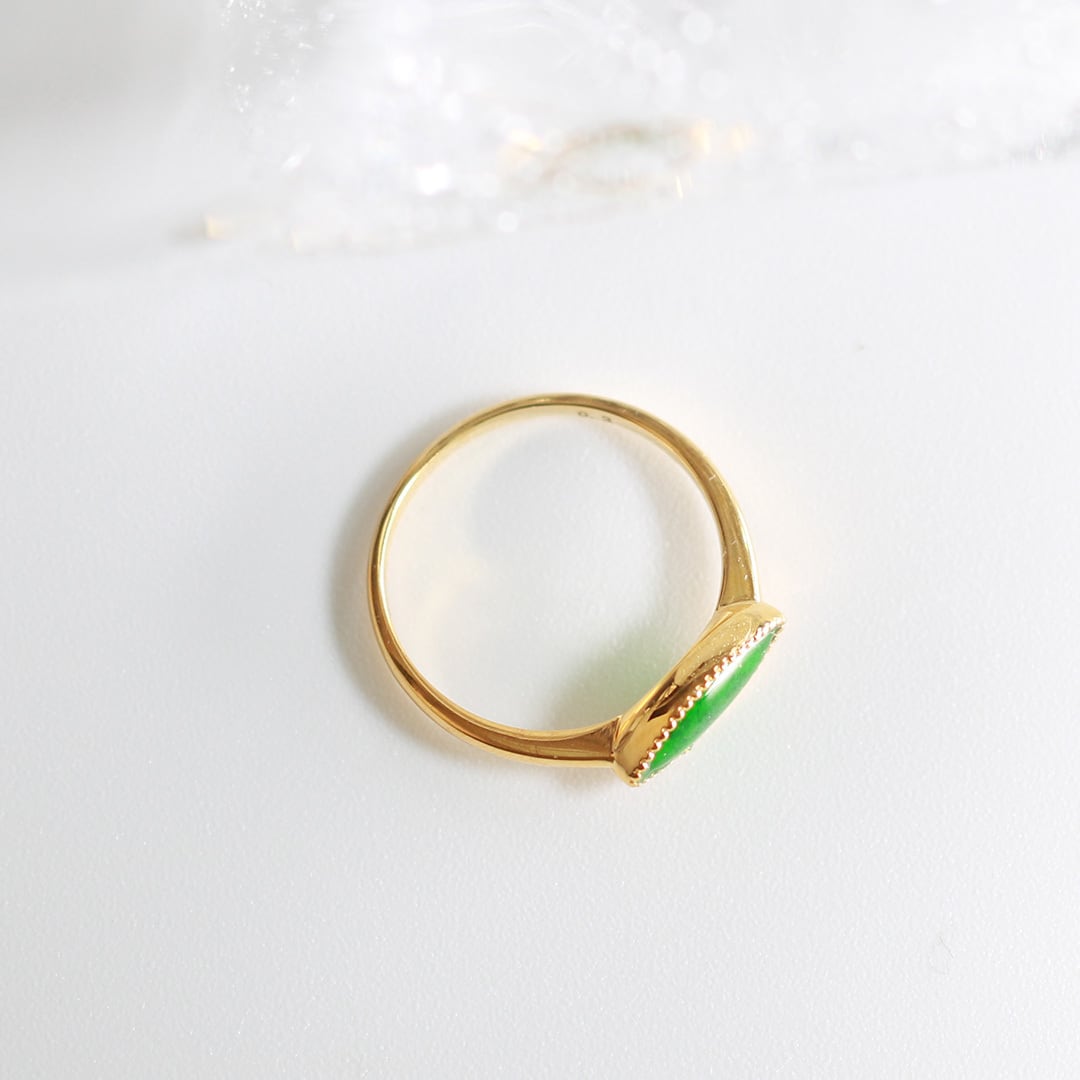 光にかざすと神秘的! 深緑マーキス翡翠 K10YGリング A貨翡翠 jd_rg1455