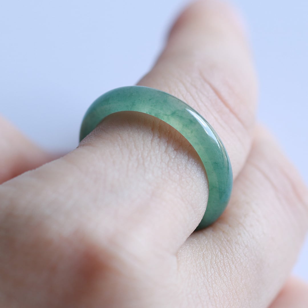 こちらの翡翠くり抜きリングは、通常のくりぬきリングほどは幅がございませんので、