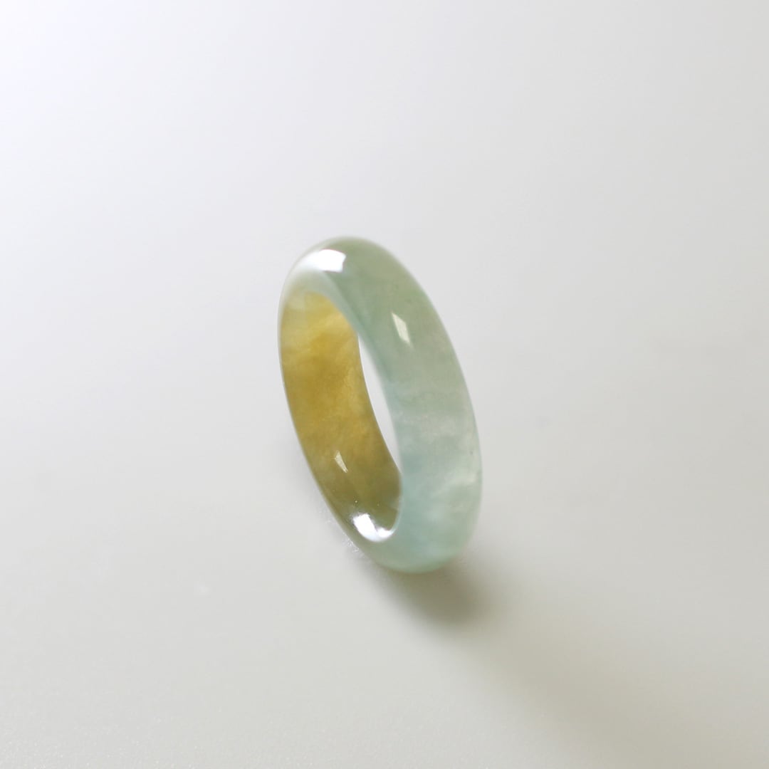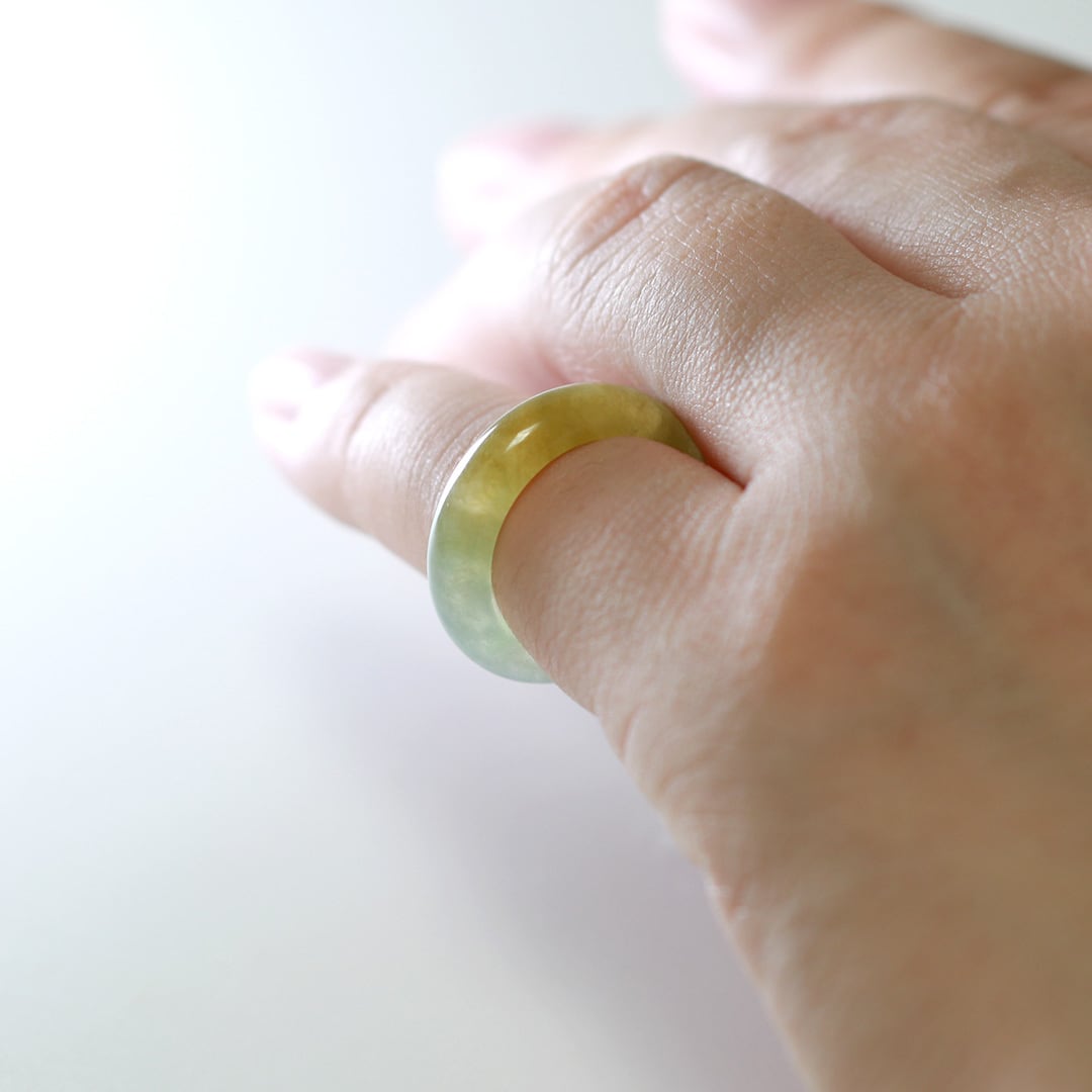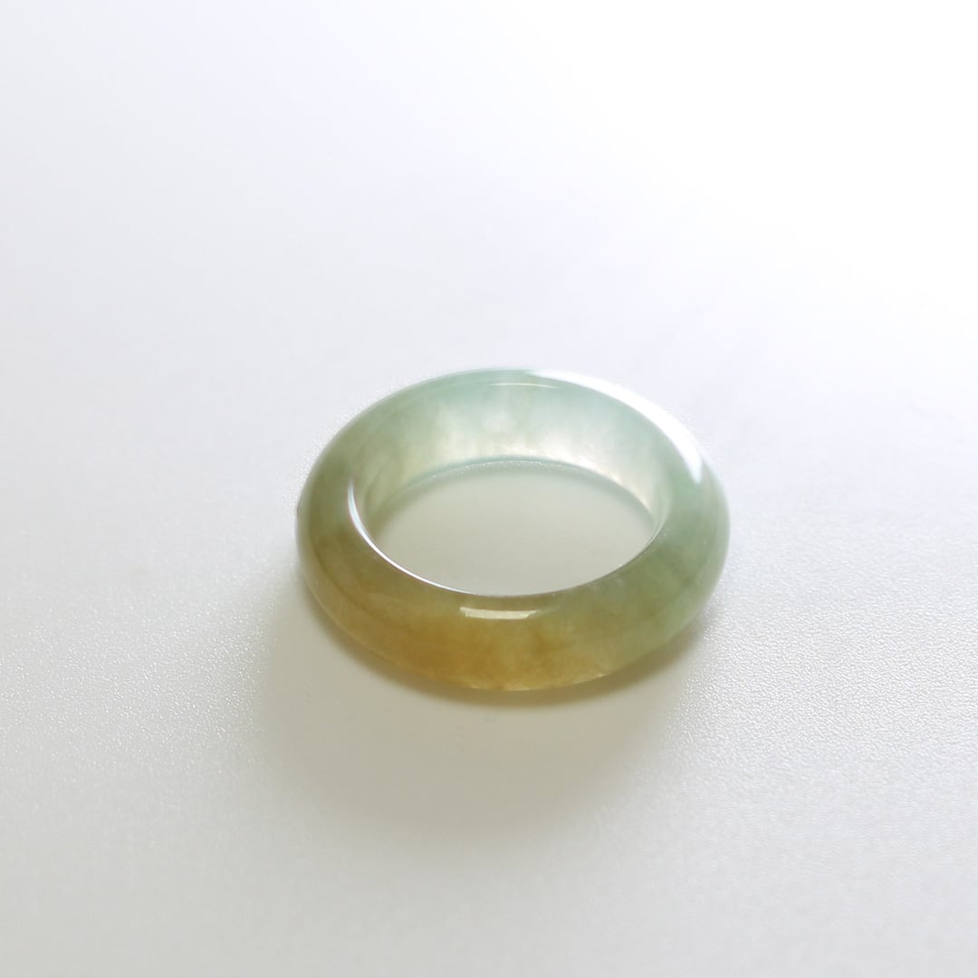 【5.5号】抜群の透明感とイエローの翡翠のバイカラー! clear yellowくり抜き甲丸リング A貨翡翠 jd_rg1691