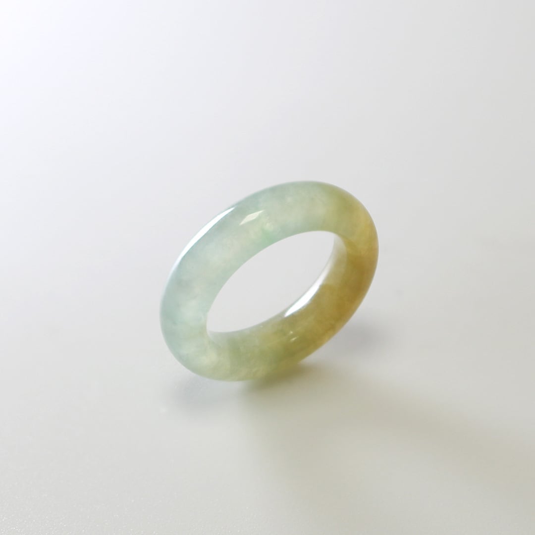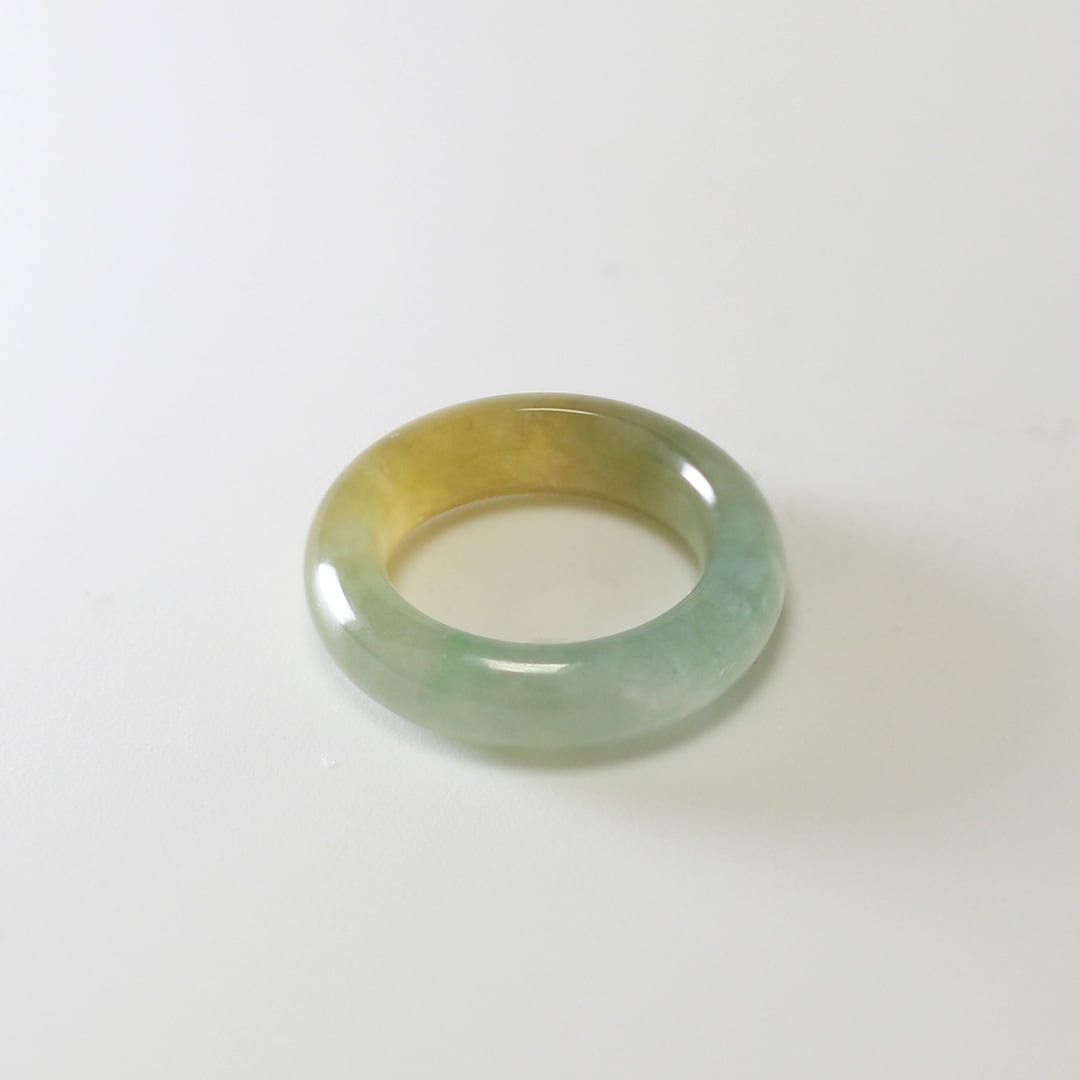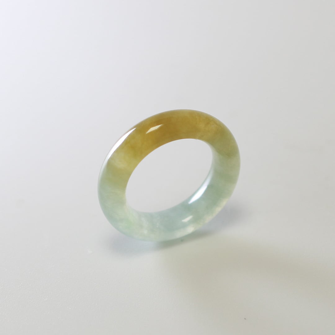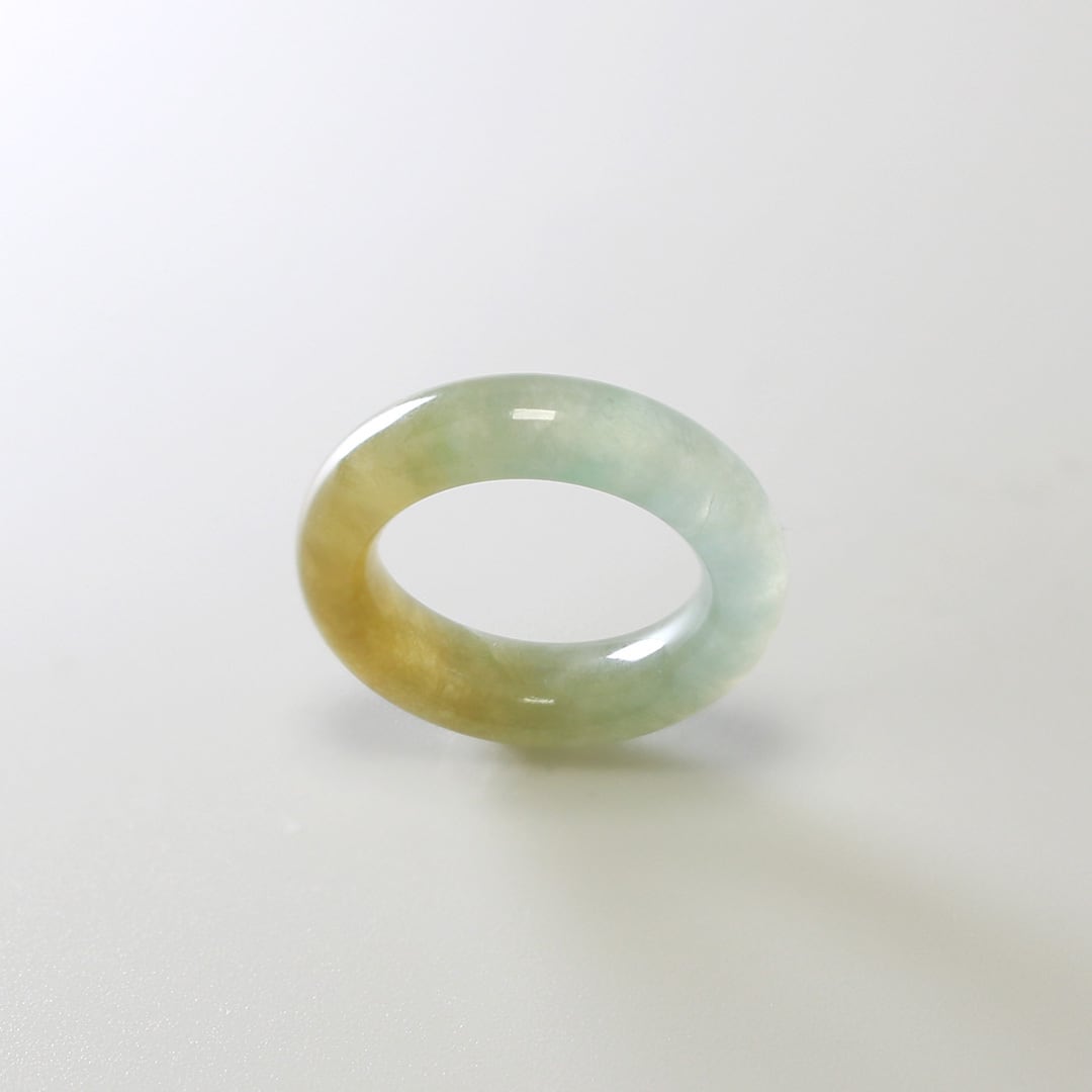 【5.5号】抜群の透明感とイエローの翡翠のバイカラー! clear yellowくり抜き甲丸リング A貨翡翠 jd_rg1691