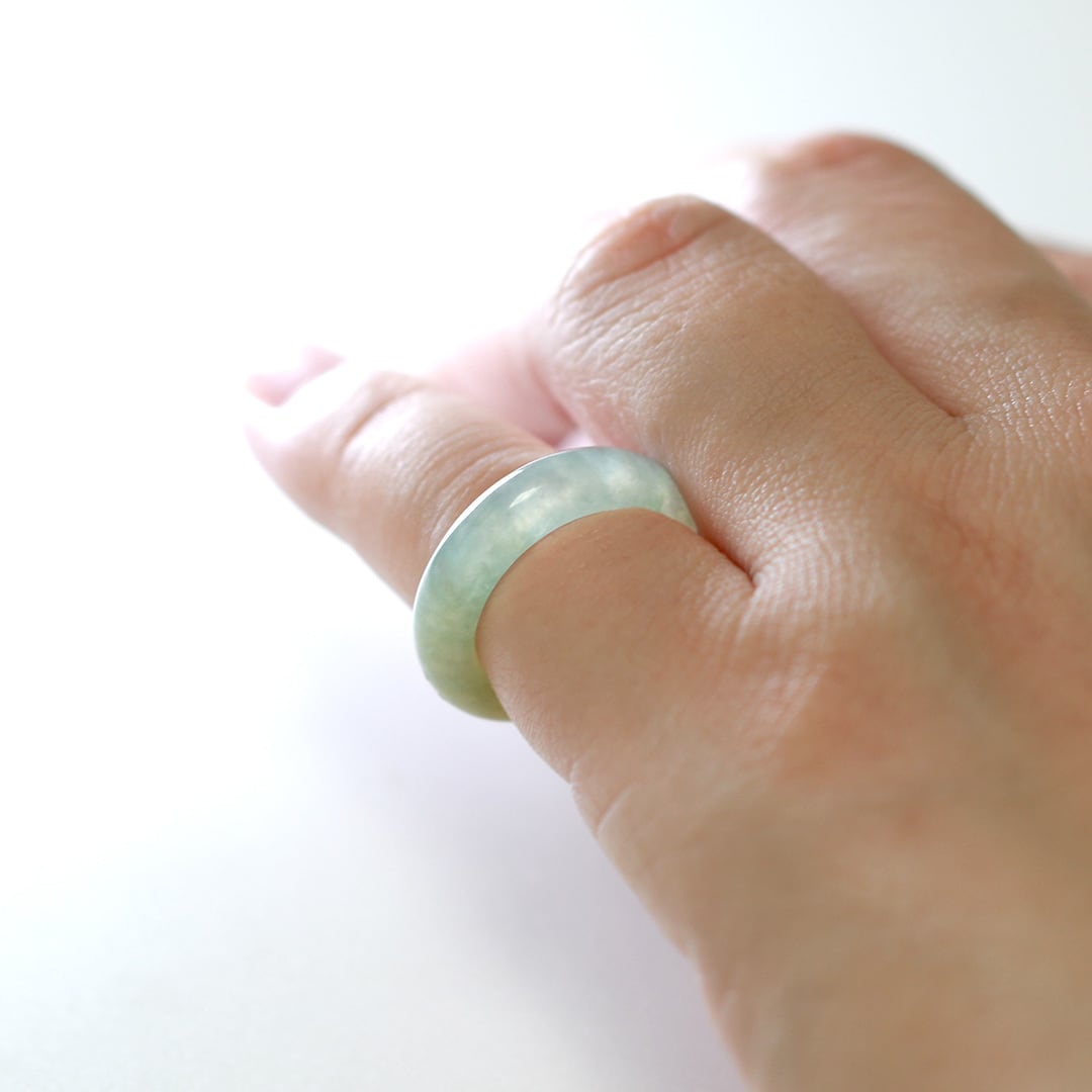 *翡翠くり抜きリングは幅・厚みがあるため地金のリングの号数より1・2号ほど大きいサイズをおススメしております。