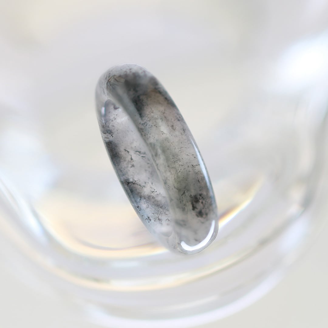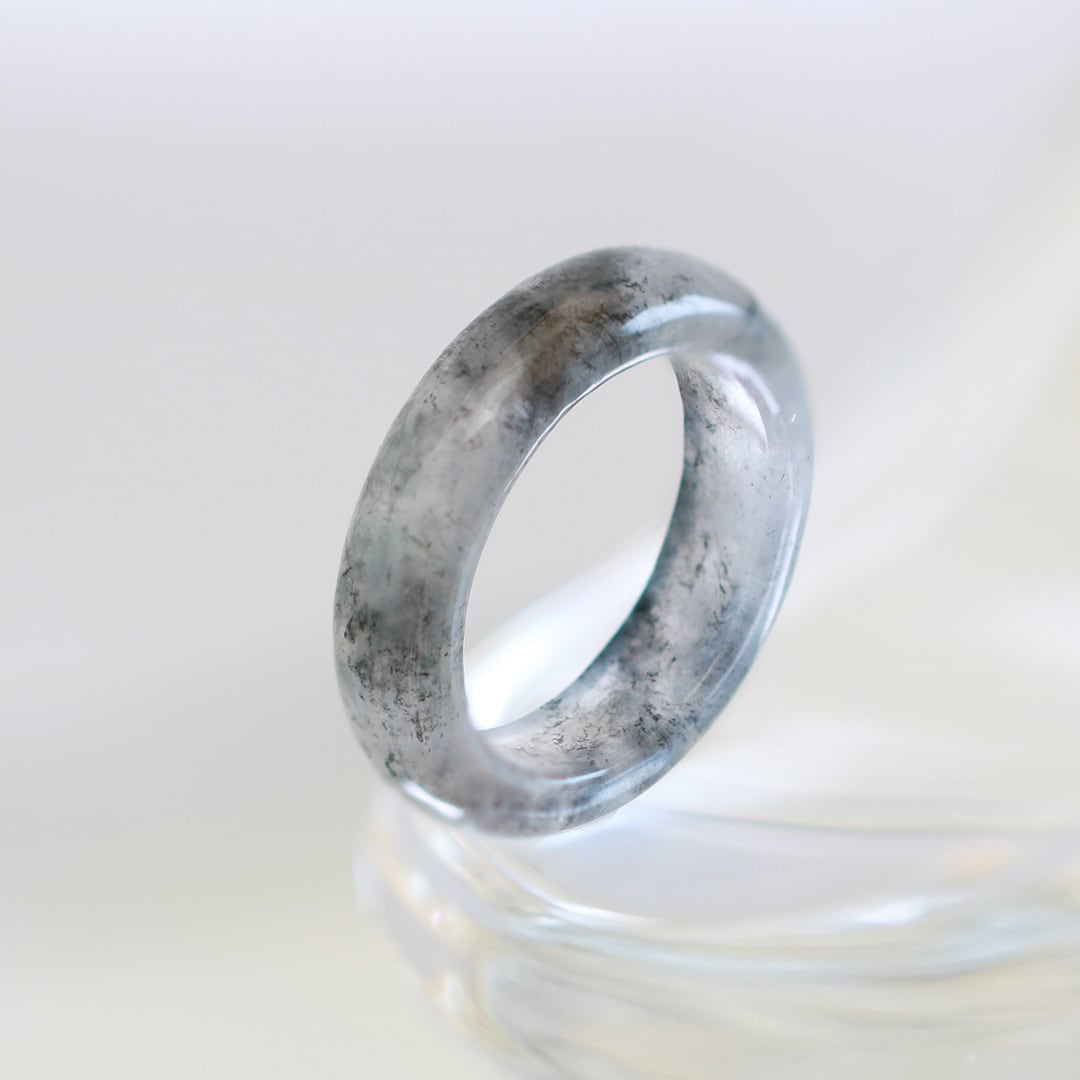 【10.5号】ブラックカラーの隙間からのぞかせる透明感がシックな装いにピッタリ!翡翠くり抜き甲丸リング A貨翡翠 jd_rg1740