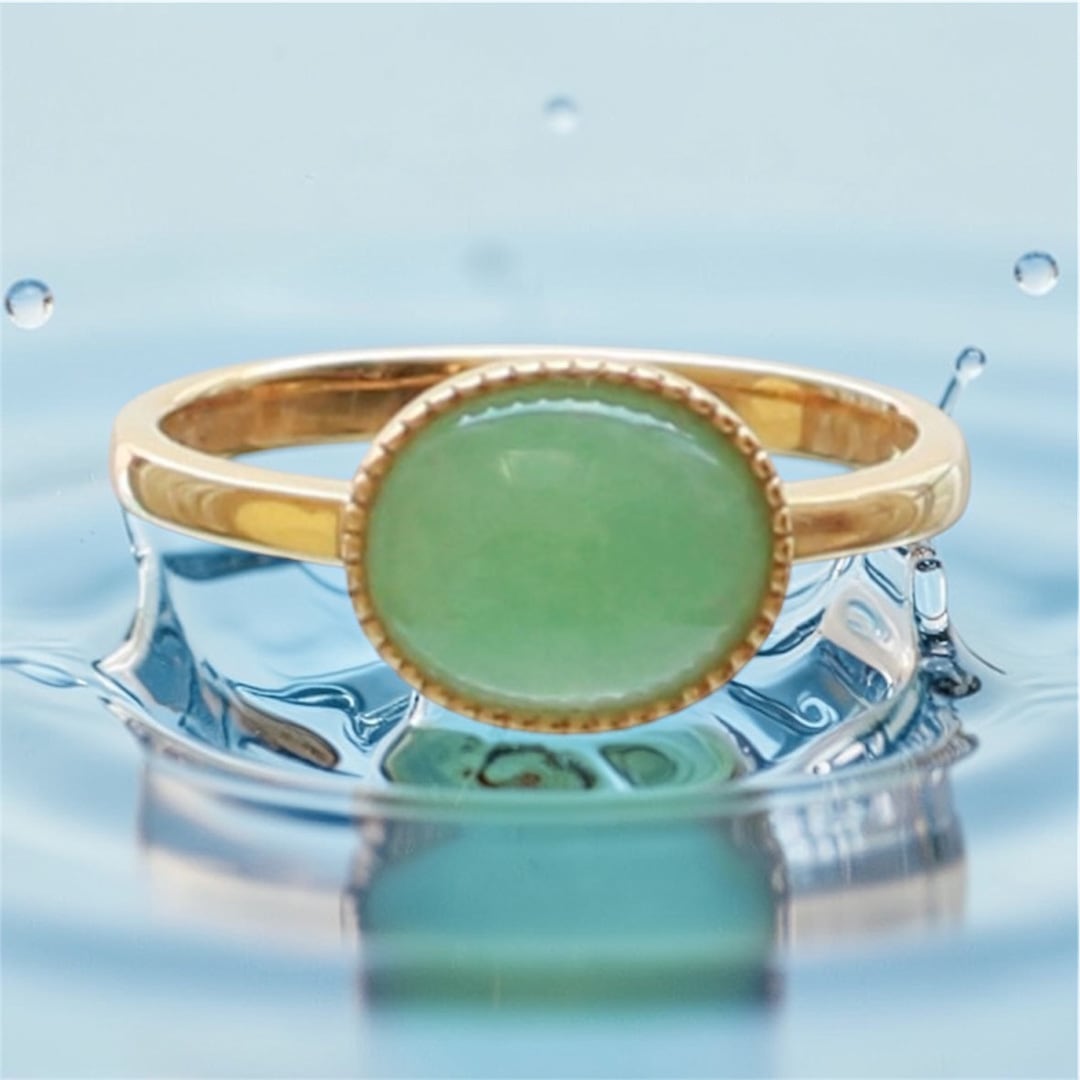 美しいグリーンの翡翠が魅力的な、K10YG 翡翠リング。