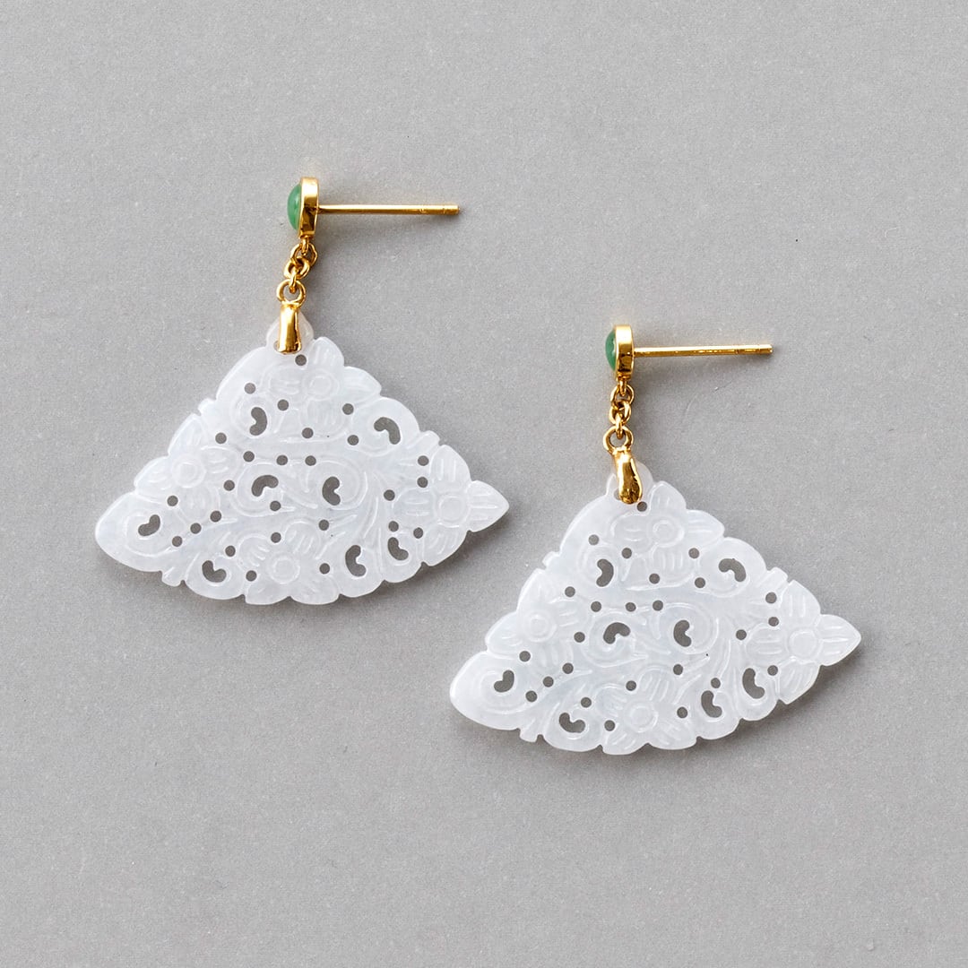 K18YG 白翡翠 透かし彫りピアス A貨翡翠 jd_mm1160