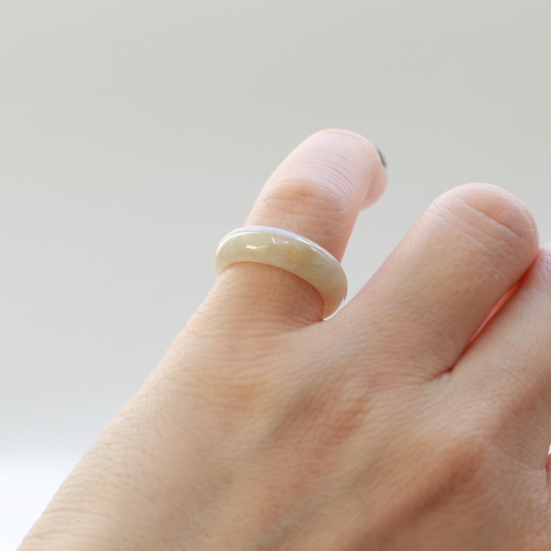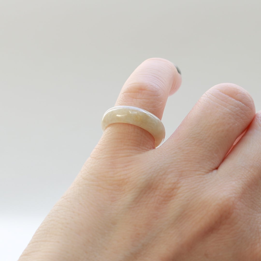 【10号】白翡翠!翡翠くり抜き甲丸リング A貨翡翠 jd_rg1957
