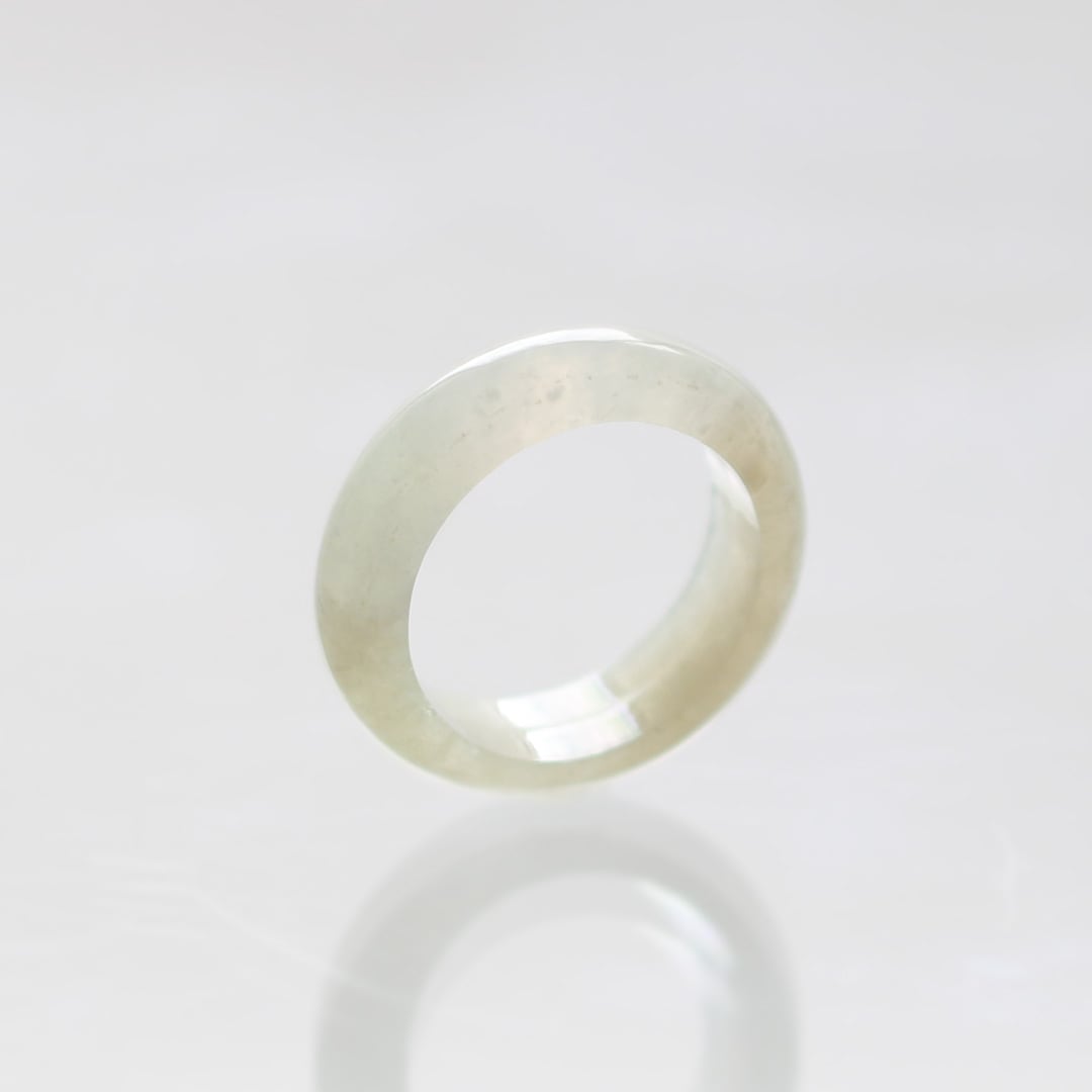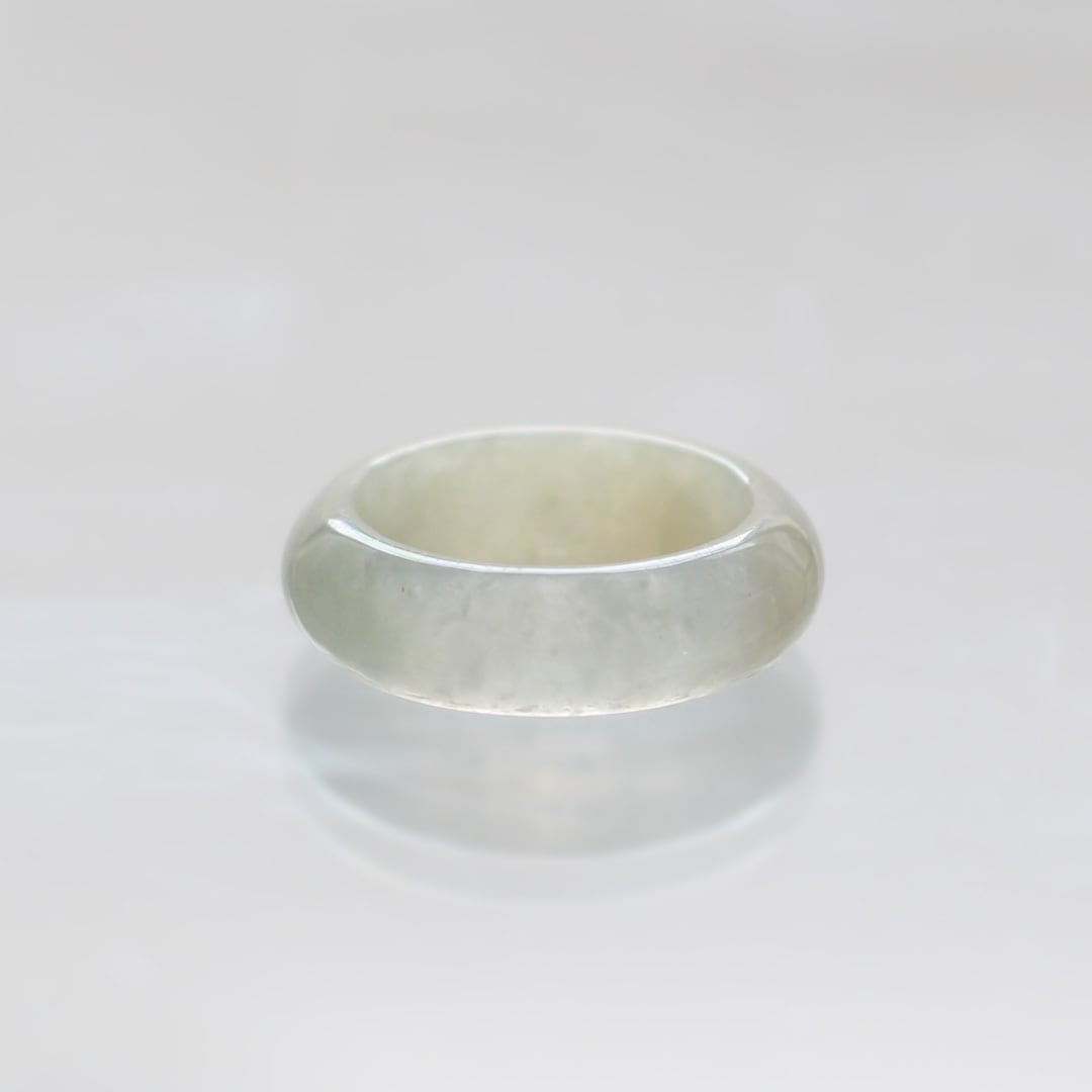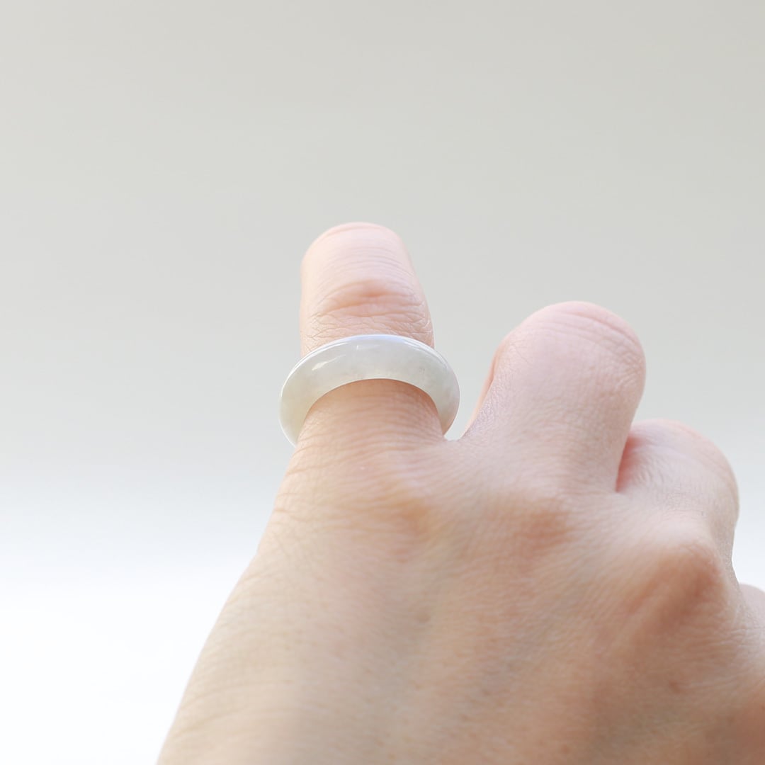 【9.5号】白翡翠!翡翠くり抜き甲丸リング A貨翡翠 jd_rg1958