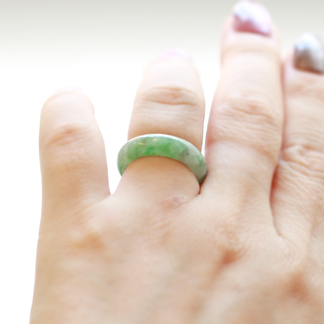 翡翠くり抜きリングは厚みがあるため、普段の号数より1〜2号ほど大きめのサイズをおススメ致します。