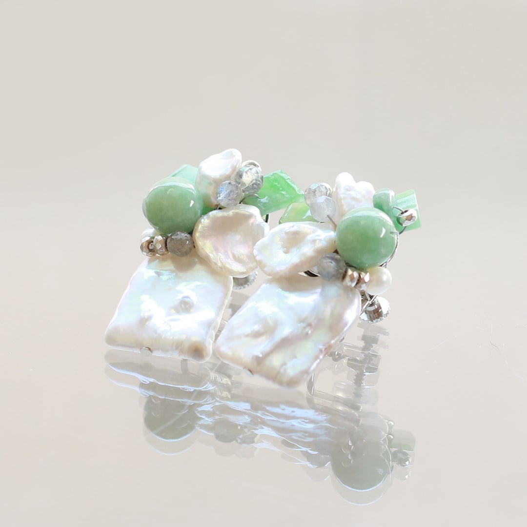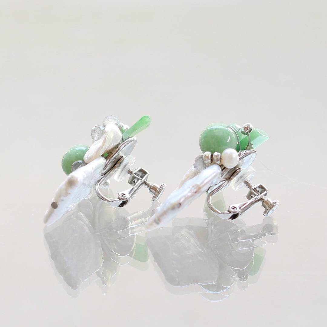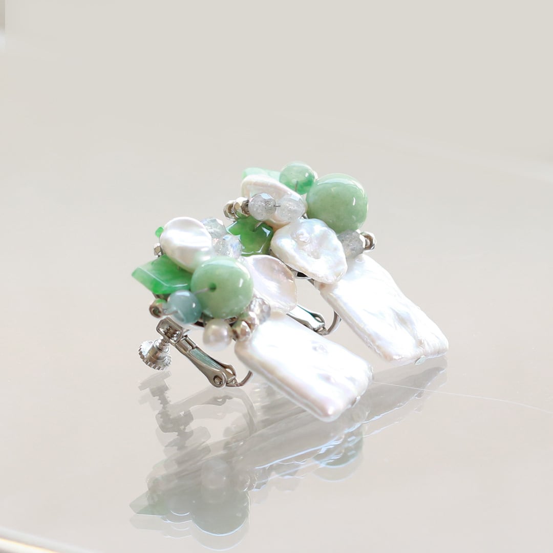 翡翠とパールのコラボイヤリング!翡翠、パールイヤリング A貨翡翠 jd_mm1161